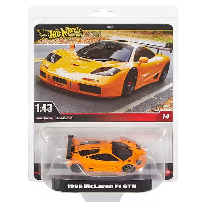 Description - All Hot Wheels Premium 1:43 scale vehicles feature incredible detailing that enhances their collector value. These officially licensed replicas are slightly larger than standard Hot Wheels cars and boast authentic details. Adult collectors who appreciate quality will love the Real Riders tires and all-metal construction. Sold separately, while supplies last. Colors and decorative elements may vary. Hot Wheels Premium 1:43 scale vehicles are meticulously detailed replicas that will delight collectors. Each officially licensed car features an all-metal body and Real Riders tires. The vehicles are made up of 1520 parts, which may include front and rear lights. With their authentic appearance, these elite models look spectacular both for play and display. Designed for adult collectors seeking premium-quality, larger Hot Wheels vehicles.