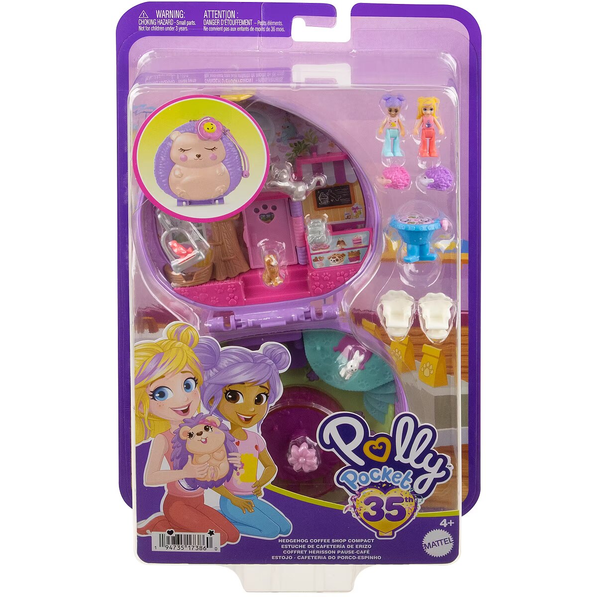 LongSummaryDescription - Polly Pocket Hedgehog Coffee Shop Compact. Type: Cafe, Recommended age (min): 4 yr(s), Recommended age (max): 99 yr(s), Minimum number of players: 1, Product colour: Multicolour, Material: Plastic