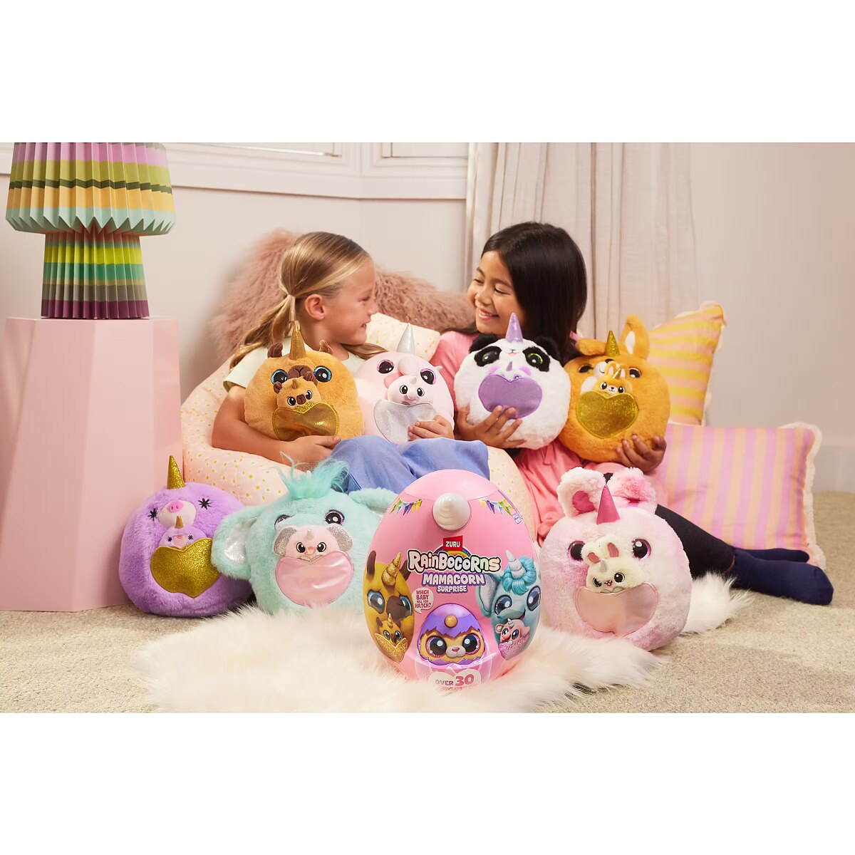 LongDesc - Rainboville has a new mom! Meet Rainbocorns Mamacorn Surprise, a magical new addition to the Rainbocorns family! Hatch the colorful egg and uncover over 30 exciting surprises. Inside, you’ll find one of seven adorable Mamacorn plushes, along with a mystery baby to discover. Which one will you hatch? The excitement awaits! Crack open the egg to meet your new favorite plush, Mamacorn! Each Rainbocorns Mamacorn Surprise is filled with charm and ready to bring magic to your collection. Uncover a mystery baby Rainbocorn and add even more enchantment to your world. With over 30 surprises inside, including fun accessories, mini surprises, and a magic heart to reveal, Mamacorn is sure to delight. Collect all 7 Mamacorns to expand your magical realm and discover the magic of Rainboville!