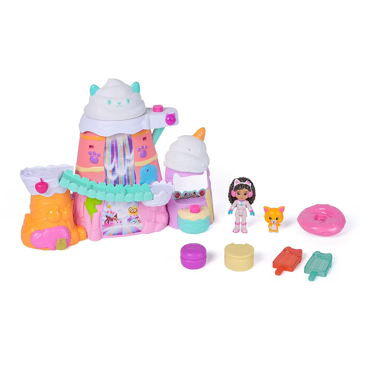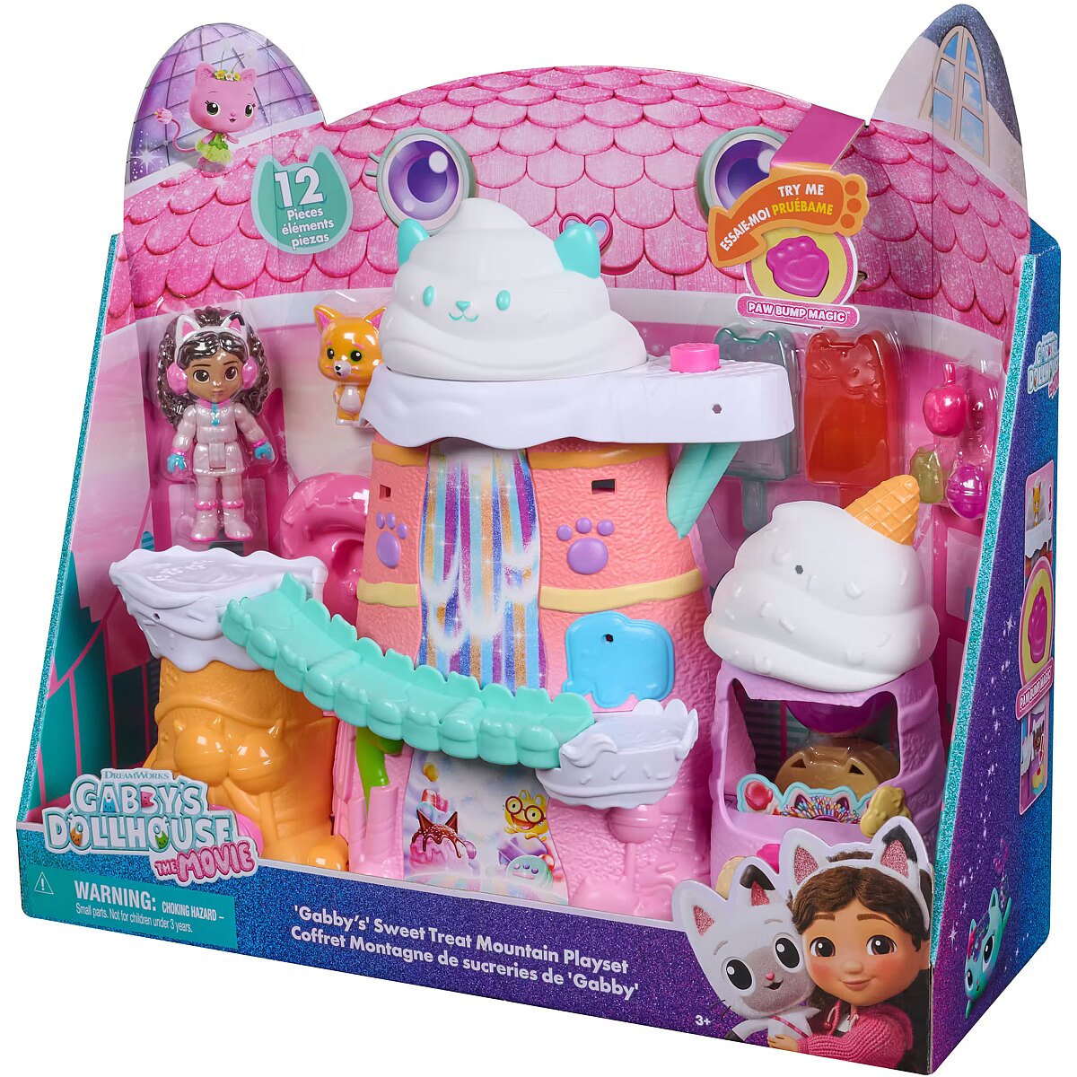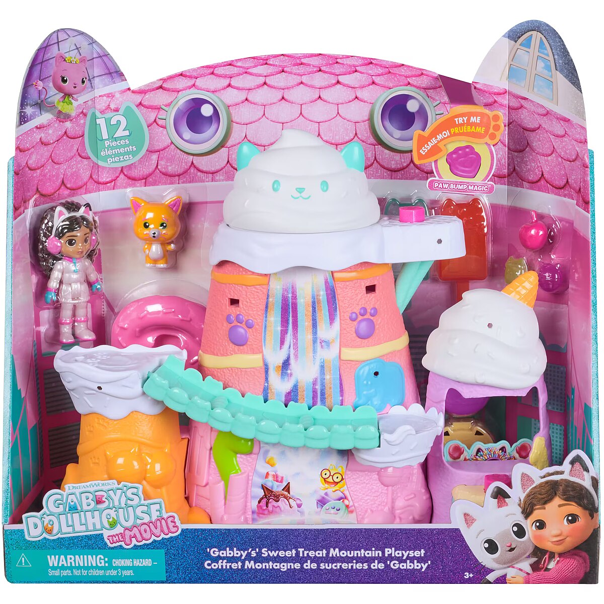 LongDesc - Bring home the magic of Gabbys Dollhouse: The Movie, with the Sweet Treat Mountain playset. With this playset, kids will explore Sweet Treat Mountain with a Gabby movie figure, in her chilly sweet treat outfit, and her pal, Chumsley. This 12-piece playset is over a foot wide & 10 inches tall. Kids will love using peggable popsicles to climb whipped cream mountain & uncover hidden activations, by pushing the Paw Bump Magic buttons, to reveal Cookie Bobby, or spin the whipped cream to reveal Chumsley's hideout. With a wobbly bridge and wobbly donut, the possibilities for play are endless. Unbox the Dollhouse Delivery, like Gabby does in the show, to find a surprise accessory, then scan the QR code to unlock a surprise in the Gabby's Dollhouse app. This set is a fun-filled way to invite meow-mazing explorations, with adorable Gabby cat toys for kids. Gabbys dollhouse toys are purrfect gifts for kids to relive cherished moments from the Gabby movie, and for creating new adventures in Gabby's dollhouse, with toddler toys for kids, like dollhouse accessories & furniture, her meow-mazing cat friends and fin-tastic mermaid toys, for endless hours of cat-terrific adventures (each sold separately)Includes: 1 Playset, 2 Figures, 9 Accessories