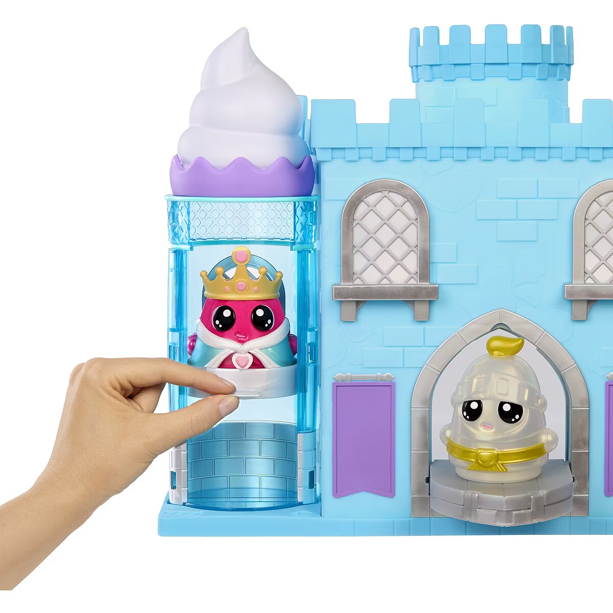 LongDesc - Delicious adventures await at the DohKins Ice Cream Castle! This fun play pack features our Never-Dry Dough that always stays soft, is gluten-free, and smells great – perfect for sculpting and squishing. Use the included character molds and accessories to create your knight and princess characters, or shape the dough into anything you can think of! The whimsical world of DohKins introduces fun, hands-on play that helps children express themselves with imagination and inspiration. At the same time, kids can build their fine motor skills with tactile play that keeps them entertained for hours. Build your own dough world with DohKins as you follow along with the animated series on MGA’s YouTube channel. Make It! Mold It! Shape It! It’s your creation!