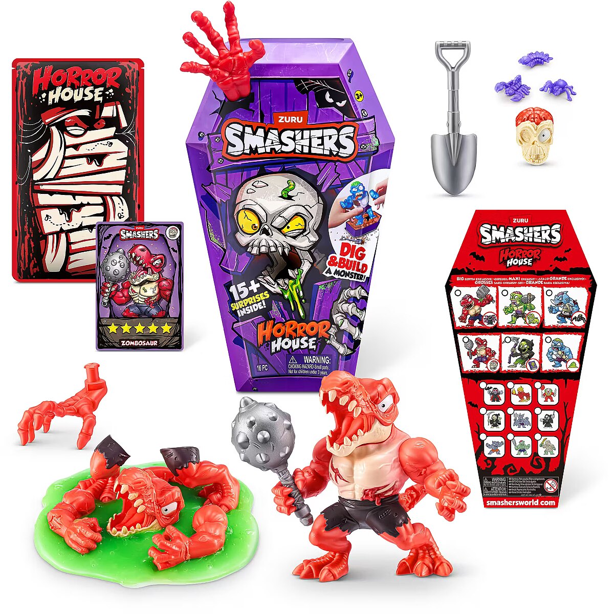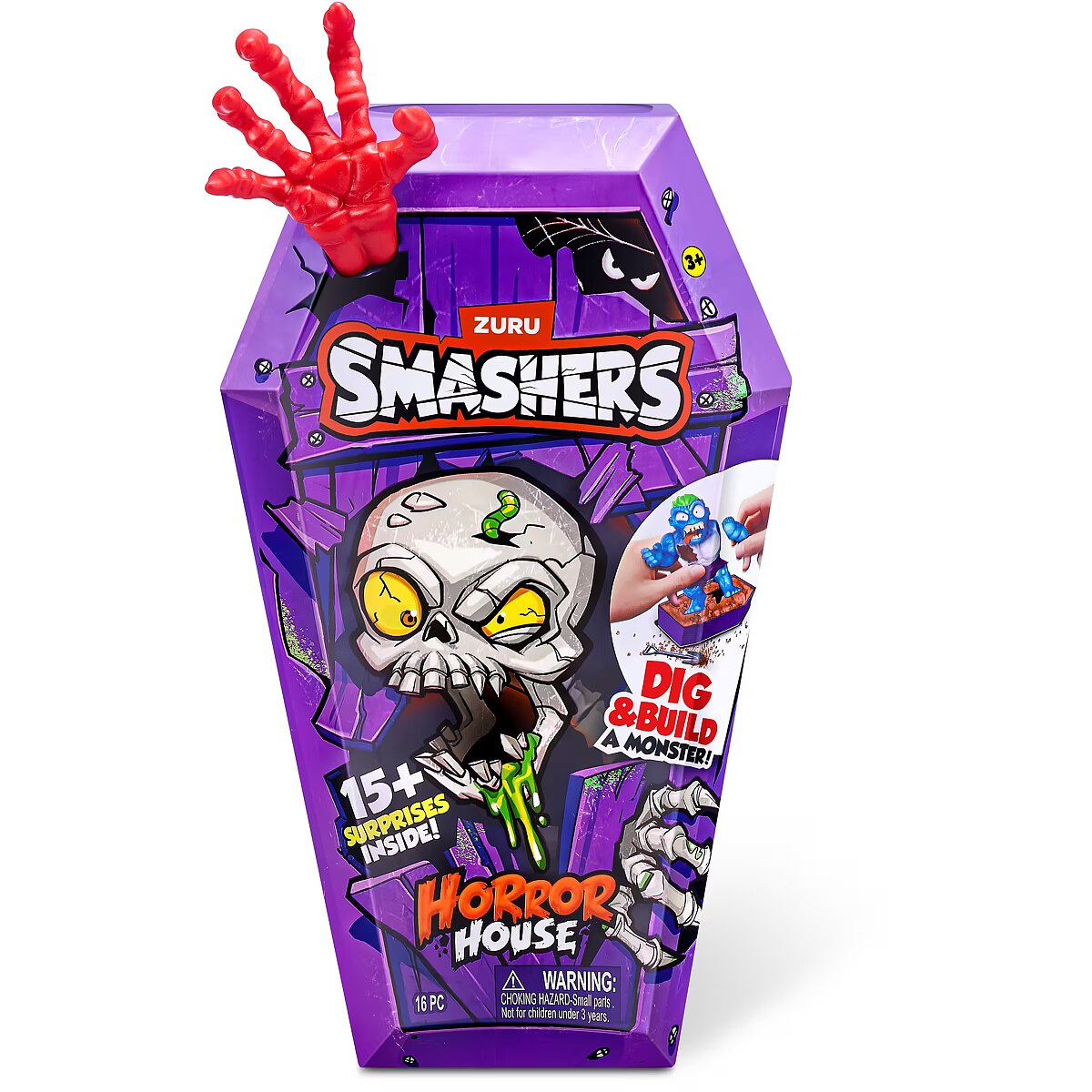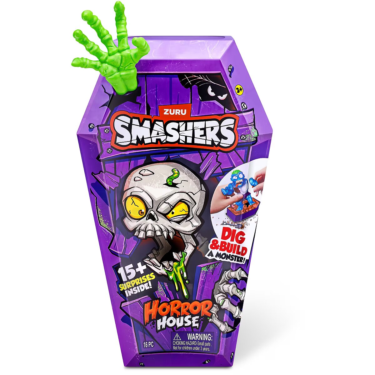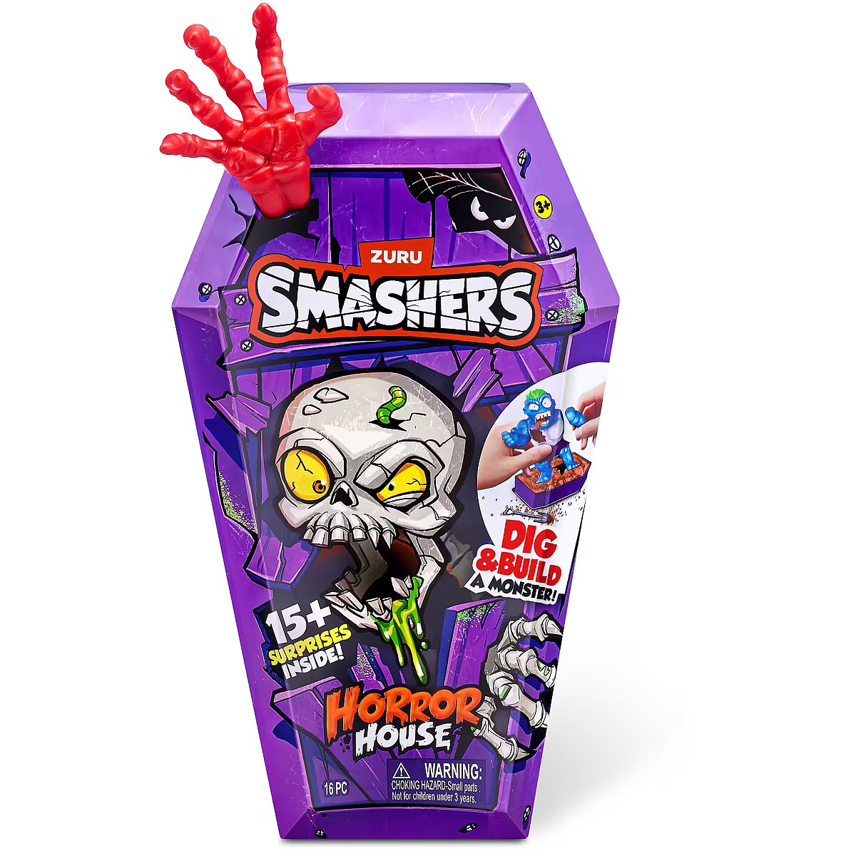 LongDesc - Smashers Horror House Series 1 ZURUSmashers Horror house takes you on a spooky quest. Smash, dig, and dissect, to bring your monster to life. With 15+ surprises inside, are you brave enough to open up the coffin and unearth a monster! Build and battle your monsters as you collect them all!