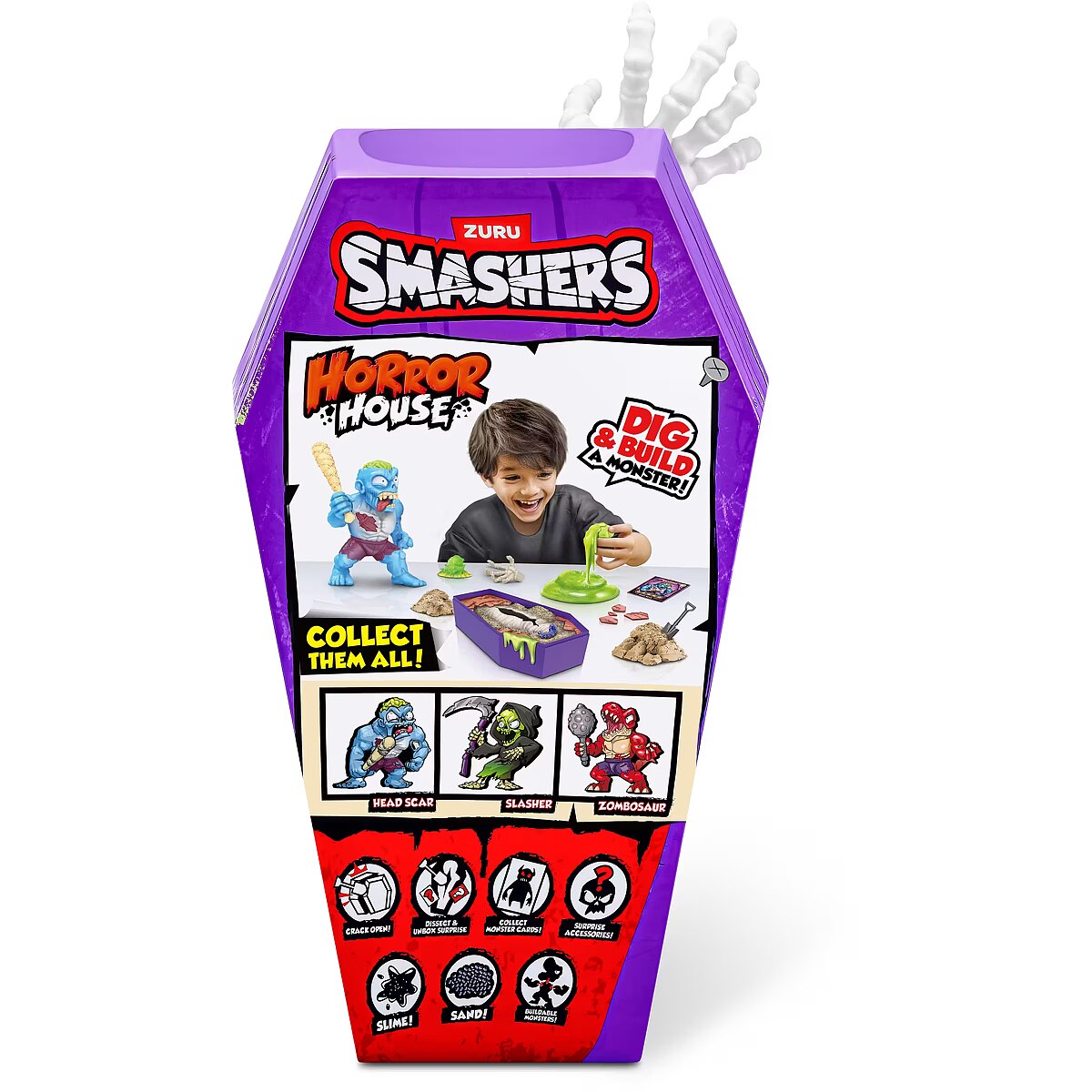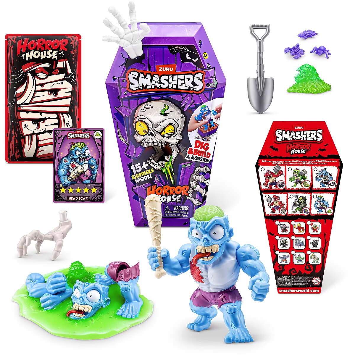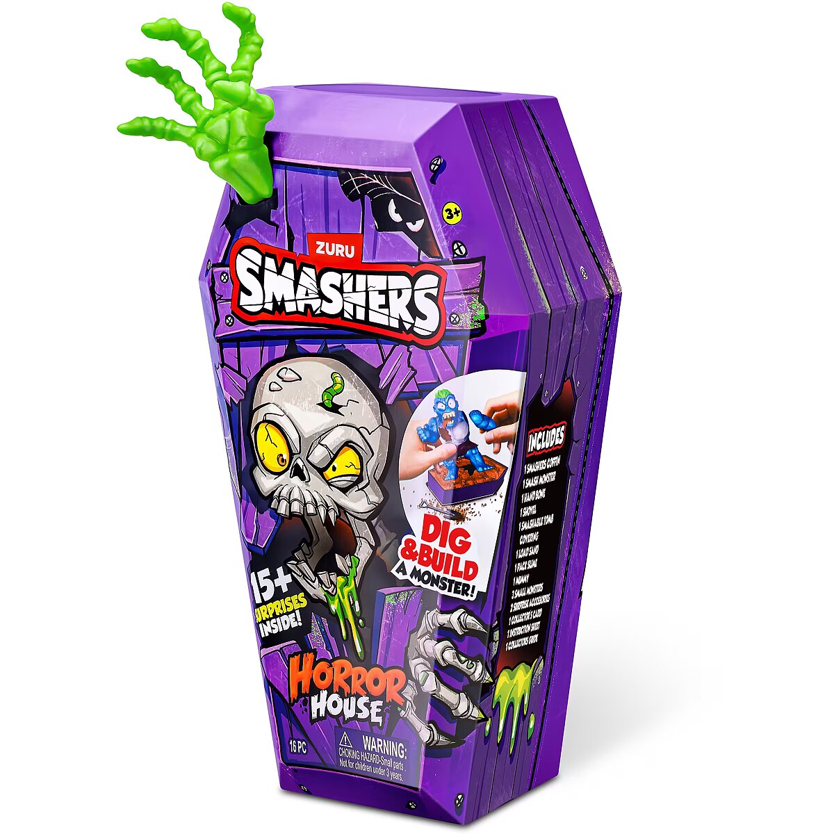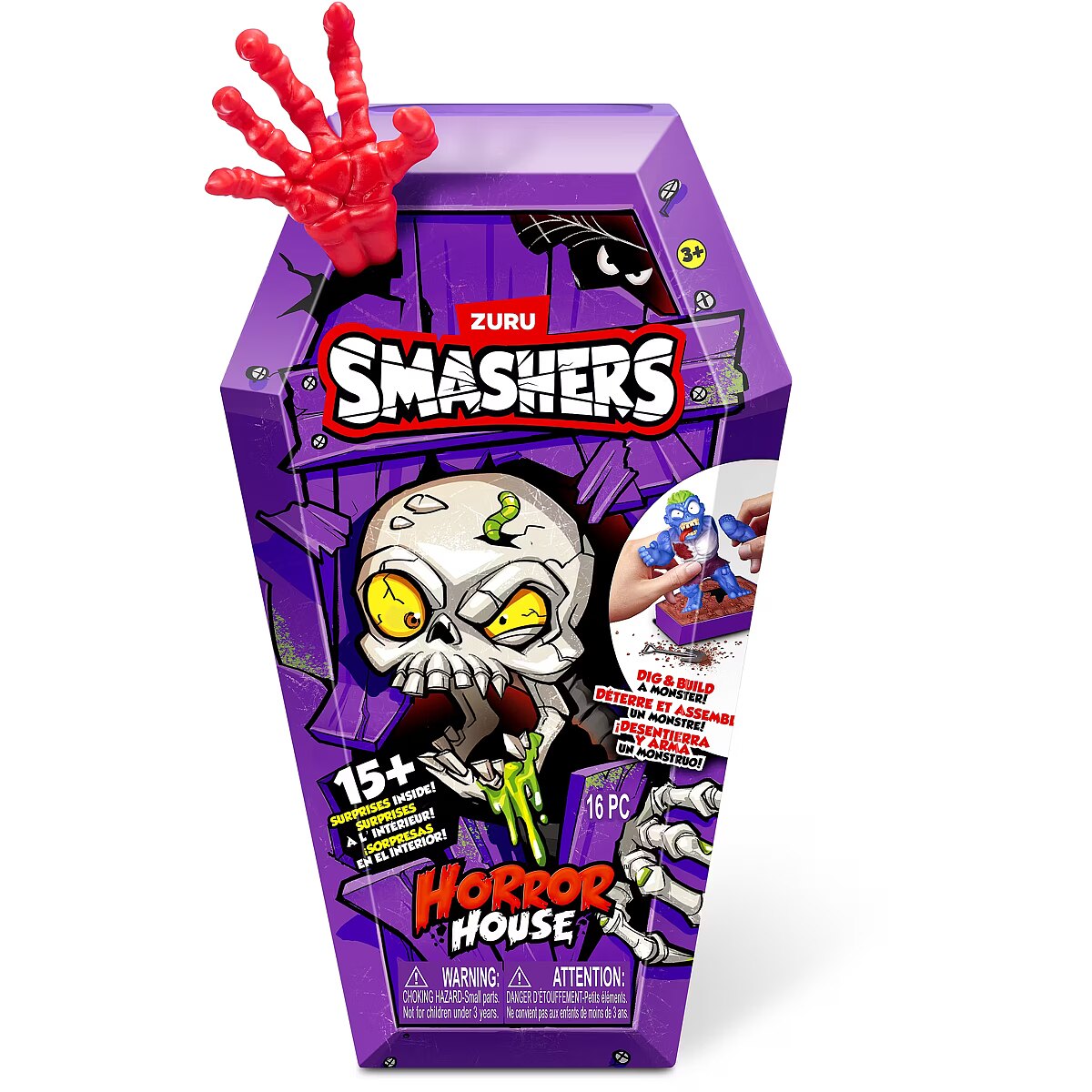 LongDesc - Smashers Horror House Series 1 ZURUSmashers Horror house takes you on a spooky quest. Smash, dig, and dissect, to bring your monster to life. With 15+ surprises inside, are you brave enough to open up the coffin and unearth a monster! Build and battle your monsters as you collect them all!