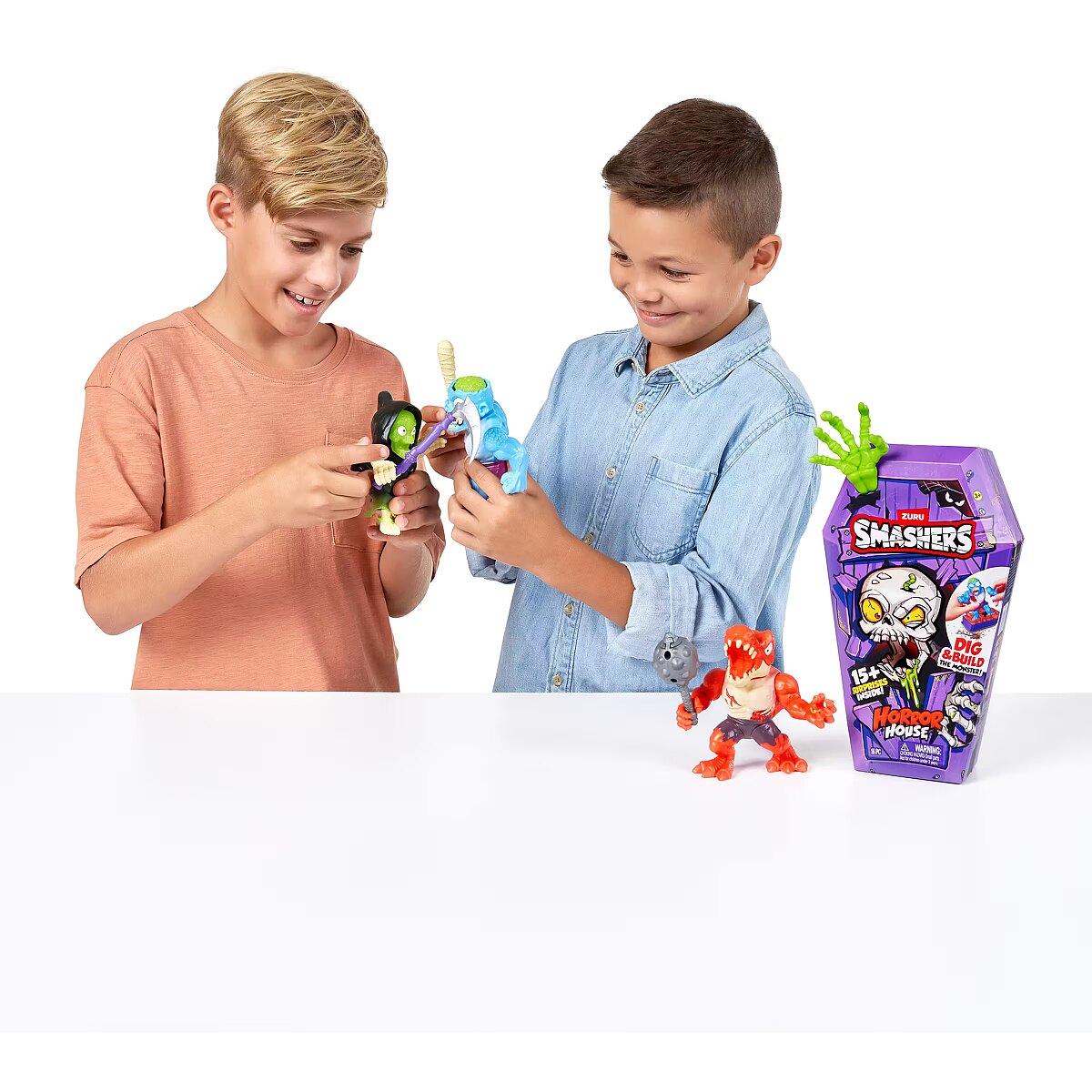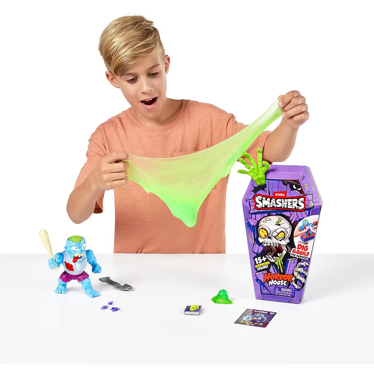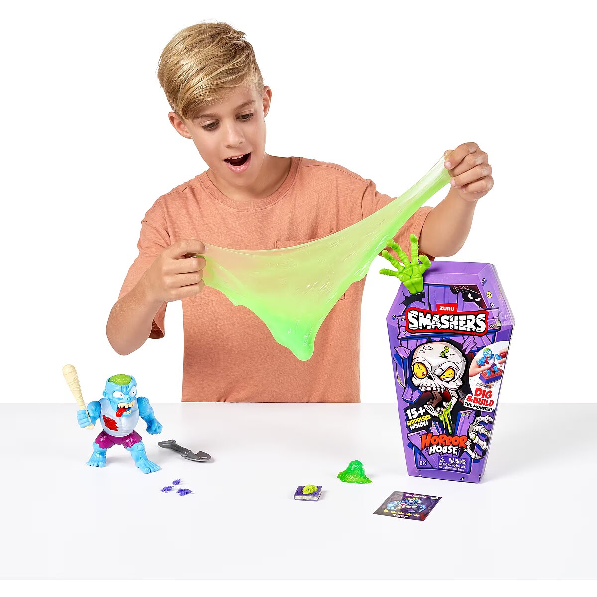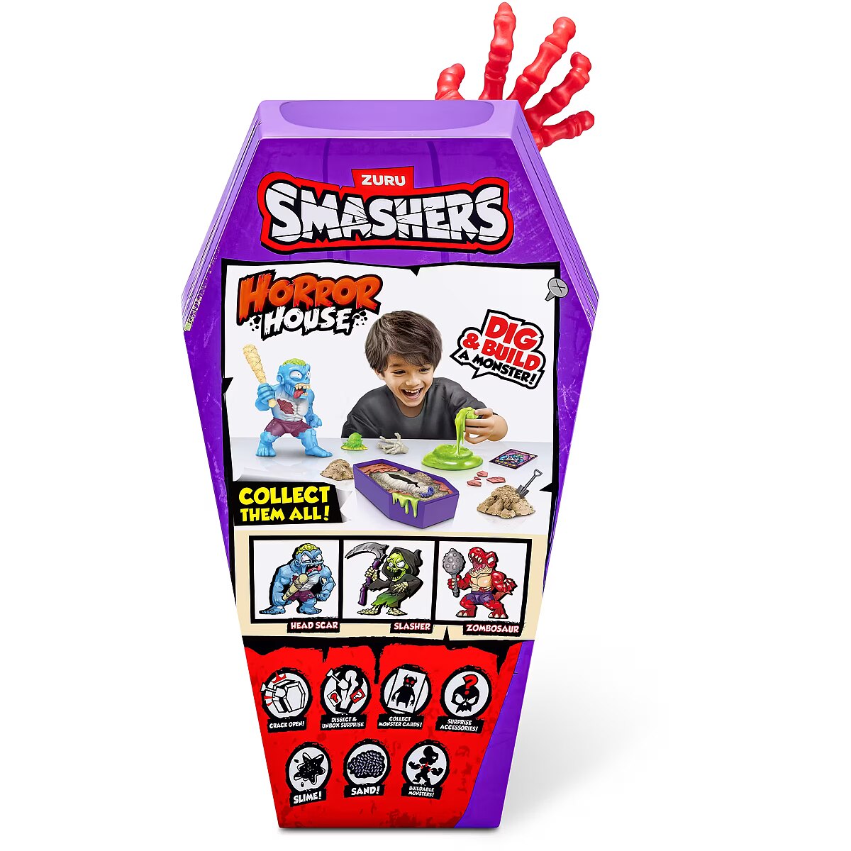 LongDesc - Smashers Horror House Series 1 ZURUSmashers Horror house takes you on a spooky quest. Smash, dig, and dissect, to bring your monster to life. With 15+ surprises inside, are you brave enough to open up the coffin and unearth a monster! Build and battle your monsters as you collect them all!