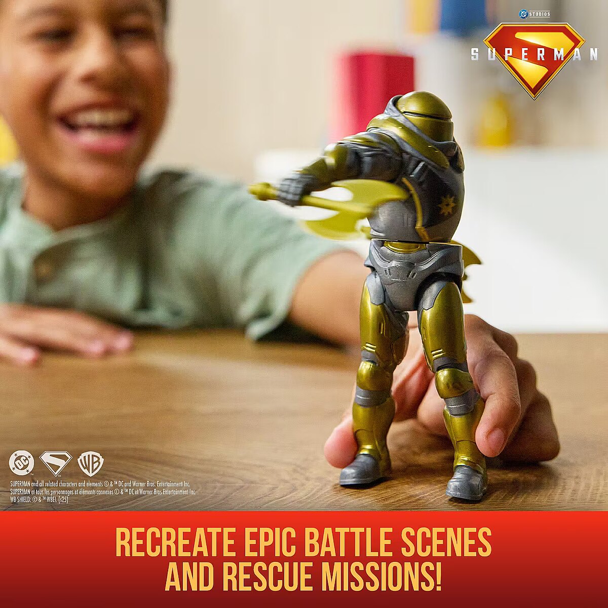 ShortSummaryDescription - DC Comics , SUPERMAN, Hammer of Boravia Epic Strike Action Figure, 6-Inch Tall, Authentic Movie Styling, Includes 2 Accessories, Kids Toys for Boys and Girls Ages 4 and Up, 4 yr(s), Gold, Grey