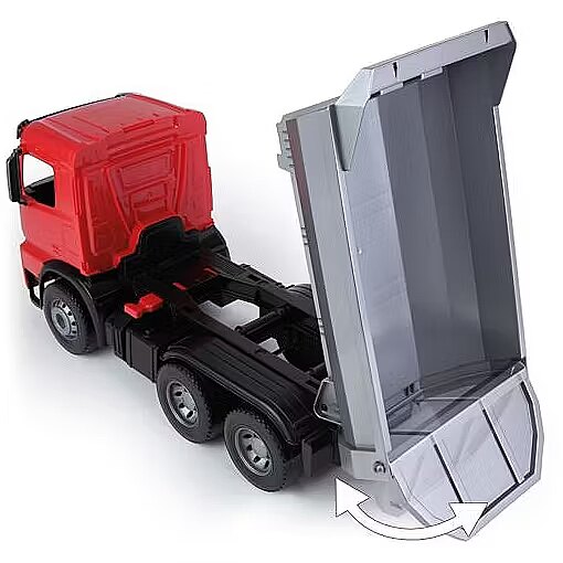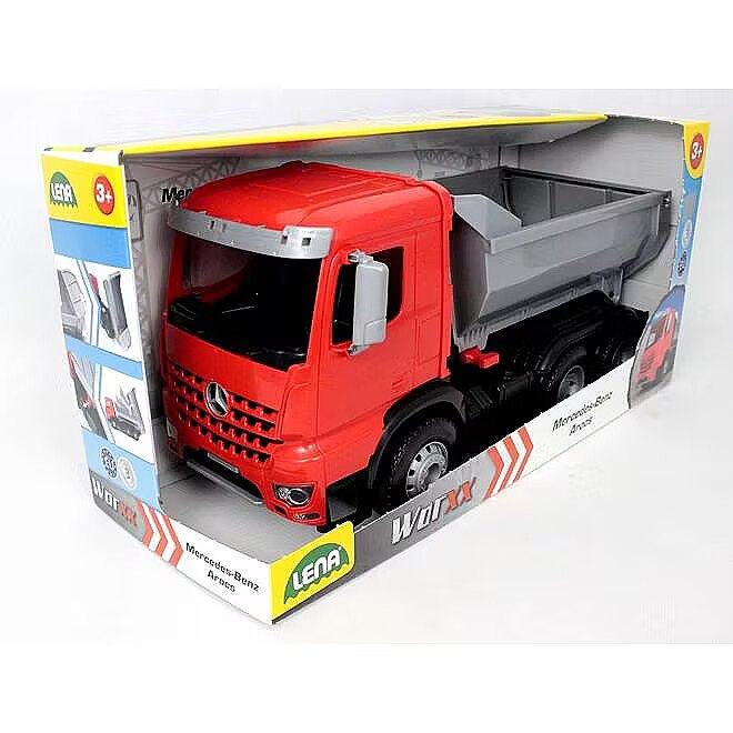 LongDesc - The Lena Mercedes Arocs Dump Truck is a realistic copy of the original vehicle. The sturdy car with a length of 45 cm is suitable for indoor & outdoor use. The red and black vehicle in a modern and detailed design is equipped with 6 mm galvanised steel axles and offers fantastic functions. For example the vehicle has a lockable flat dump body.