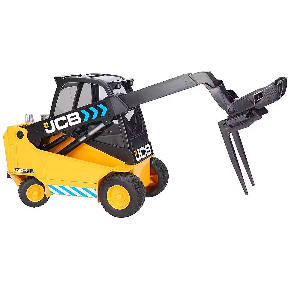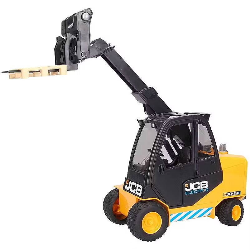 Description - Bruder 02512 JCB Telescopic handler truck (Teletruk) + pallet The telescopic loader trolley is used for transporting, and loading/unloading goods placed on a pallet. This trolley is the ideal combination of the neatness, manoeuvrability of a forklift and the telescopic arm which allows goods to be stacked at very high heights, making the equipment extremely versatile. The perfectly reproduced model, the functionality of the telescopic arm and the opening cab elements are just some of the many advantages of the Bruder toy. The toy features: Soft moulded rubber tread Lifting and extending arm system Fork levelling system Glazed cab Swivelling rear axle Pivoting door glass Opening doors Pallet included Fits all figures in the bWorld series
