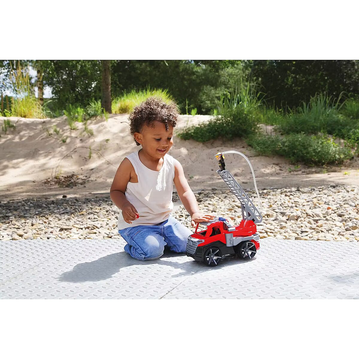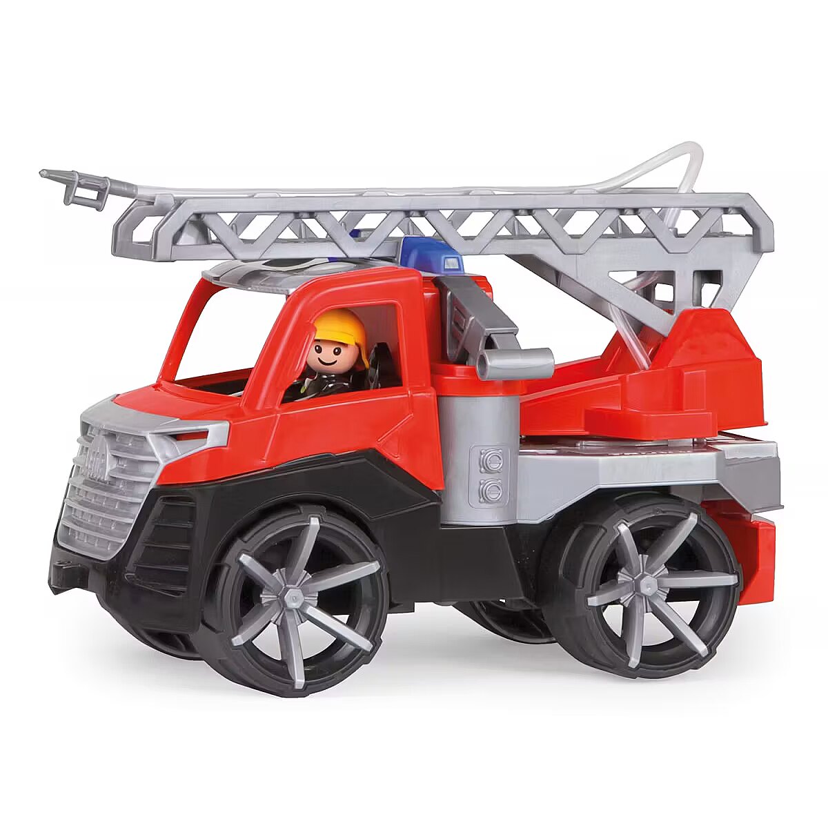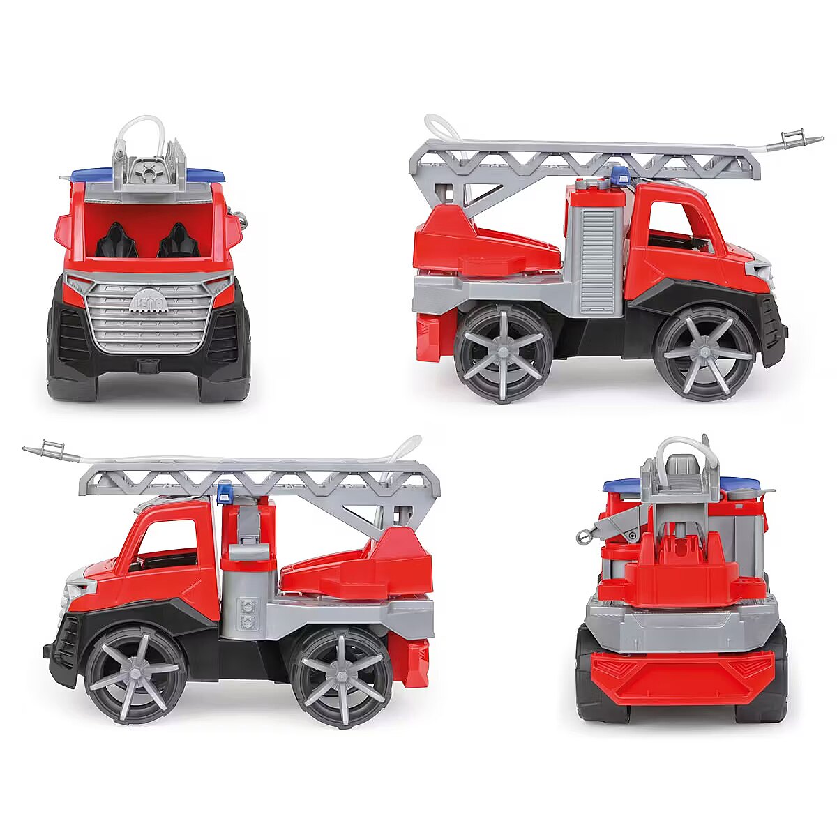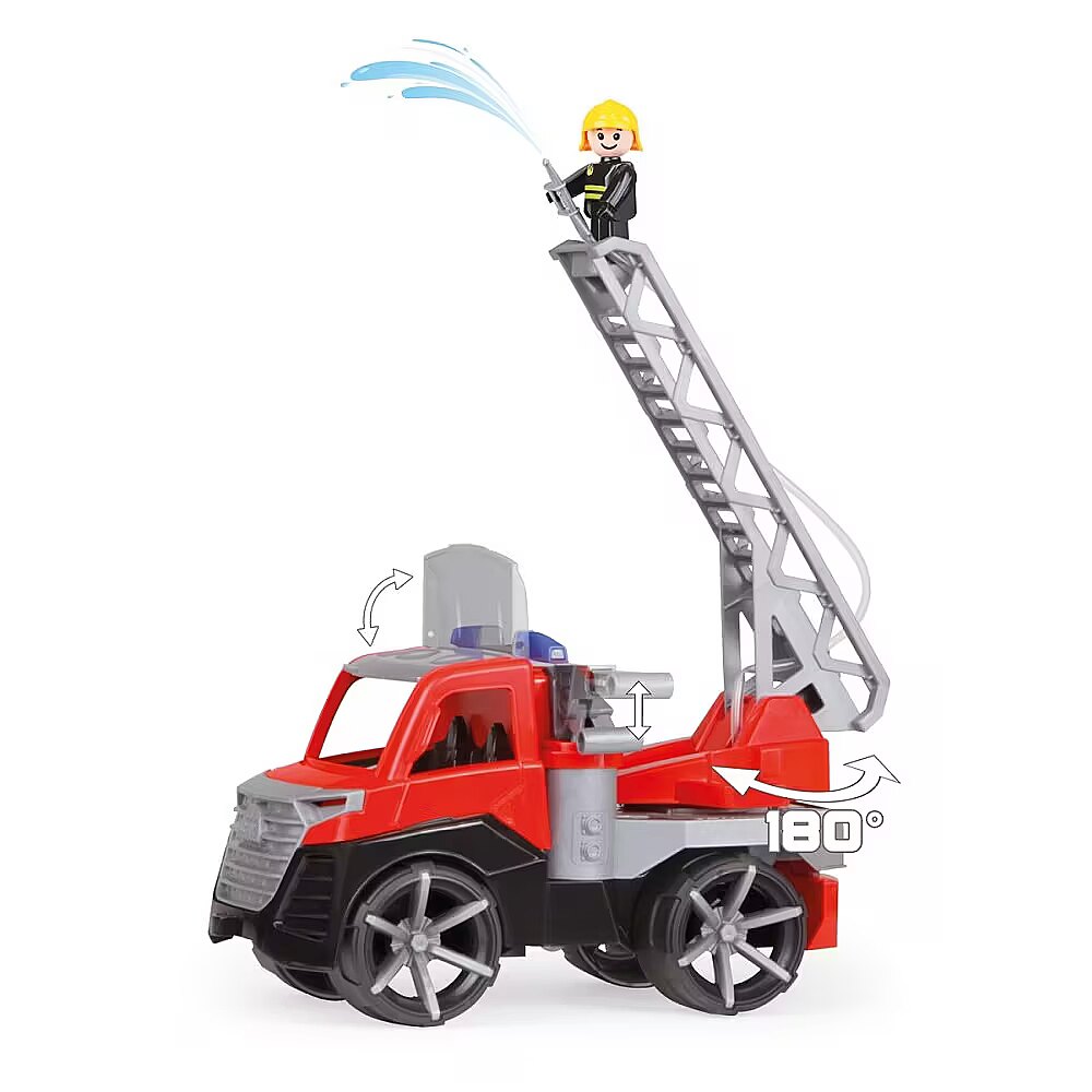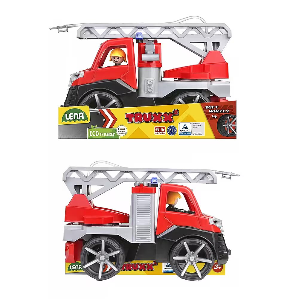 Description - Truxx2 fire engine made of high-quality plastic with a very robust construction. Movable parts, locking device against unwanted tipping, folding cab, rubberised quiet wheels. Features water spray function. Figure included. Packaged in a colourful presentation box.