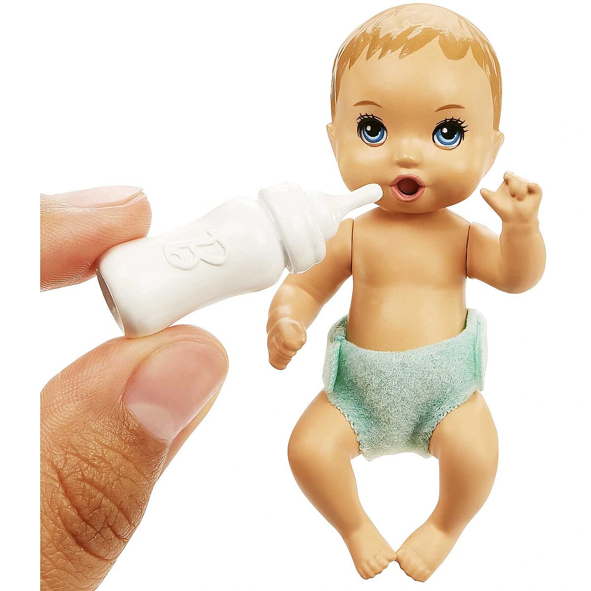 LongSummaryDescription - Barbie Skipper Babysitters Inc. Skipper Babysitters Playset with Skipper Doll, Baby Doll with Sleepy Eyes, Crib and Accessories. Doll type: Fashion doll, Doll's gender: Female, Recommended age (min): 3 yr(s), Suggested gender: Girl. Height: 266 mm, Weight: 607 g. Material: Plastic, Product colour: Multicolour
