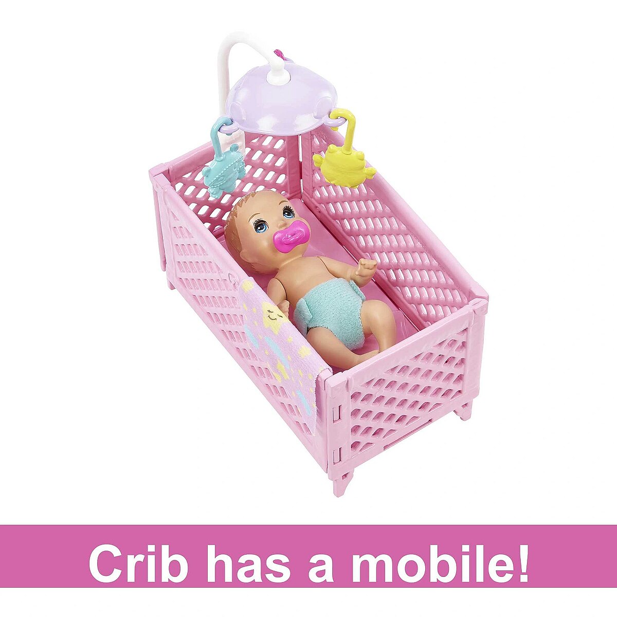 LongProductName - Barbie Skipper Babysitters Playset with Skipper Doll, Baby Doll with Sleepy Eyes, Crib and Accessories
