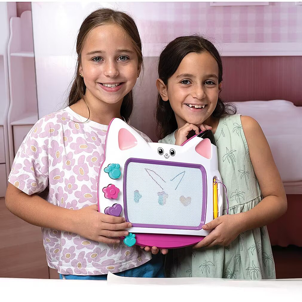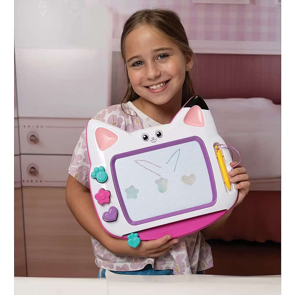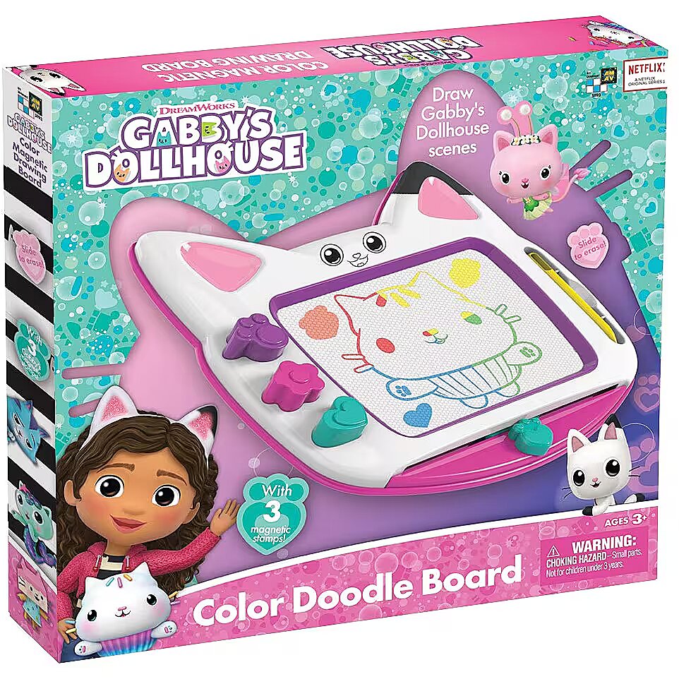 Description - Color Doodle Board Gabbys Dollhouse Feline-style magnetic whiteboard. Allows you to create drawings in four colours. The drawing can be easily erased. Includes an additional 3 drawing stamps in three different shapes.