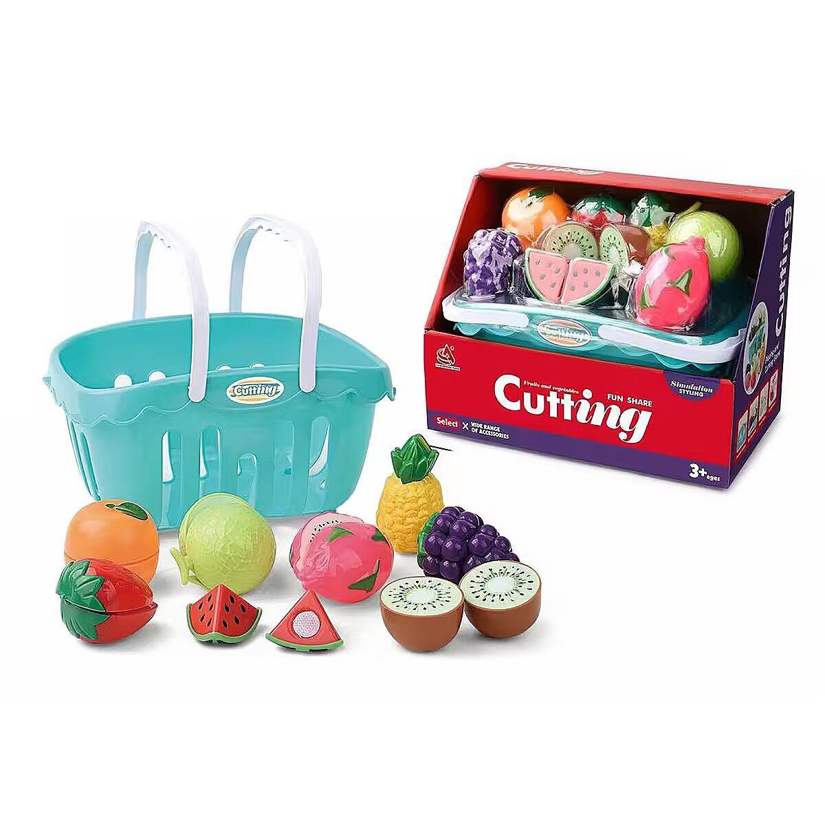 Features: Two-piece fruit pieces connected by Velcro allow for fun slicing.