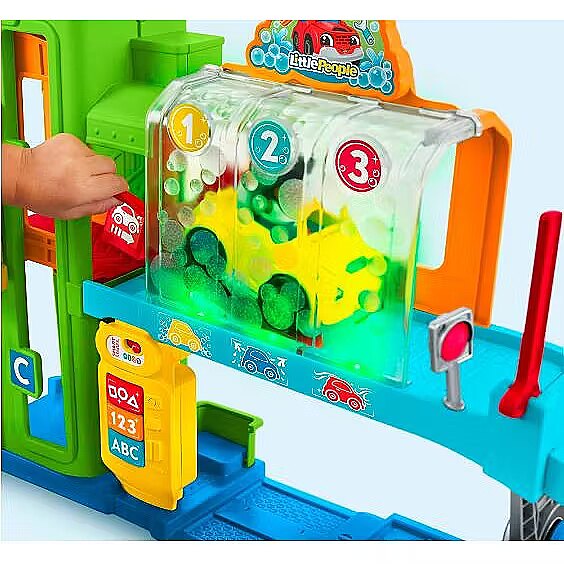 Description - At the Fisher-Price Little People Educational Car Wash, kids can refuel, inspect and wash their car, and then move on to the next adventure. Children will be delighted with the multi-colored lights and 3 learning levels (with songs, sounds and phrases) that enrich the fun with this interactive set. Little ones can make up fun stories with 2 figures, 2 mechanic's tools and a push car with opening hood. Interactive car wash with lights, music and learning levels for children aged 15 and over. 3 learning levels can be adapted to the child's age! Here you will find over 60 sound activations (songs, sounds and phrases) introducing colors, letters, shapes and everyday activities, all in Polish! When kids send the car to the car wash, multi-colored lights are activated. Children decide on the course of the game: they transport the figures and cars up and down in the elevator, slide the cars down the track, refuel or charge the vehicle at the station, and perform inspections using a screwdriver and a wrench. The set includes 2 figures, 2 play elements and a push vehicle with an opening hood, which increase the realism of the game.