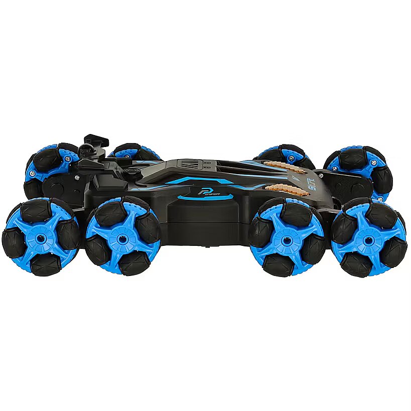 description_en - Unusual – this is how to describe this remote-controlled car! And what makes it stand out? Firstly, 8 wheels, which can be manoeuvred in such a way that the car will overcome any obstacle – even stairs. On the controller, in addition to the classic buttons for controlling the car in four directions, there is also a wheel transformation function. This allows children to easily change the height of the chassis, adapting it to different surfaces and obstacles. The car has several additional features that will make the playtime more enjoyable: music, lights and even an exhaust from which steam comes out. The set also includes a wrist controller, allowing you to control the car through gestures. Technical specifications: