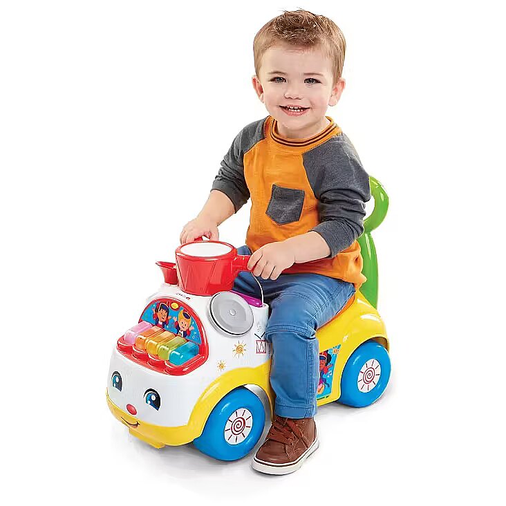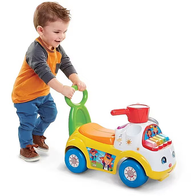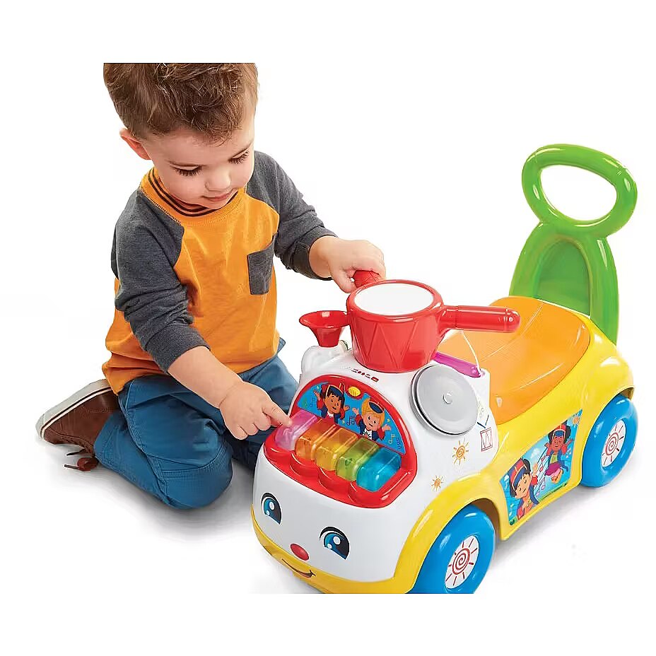 Kirjeldus - Fisher-Price'i mitmeotstarbeline sõiduk on mõeldud 12–36 kuu vanustele lastele, kelle kaal on kuni 20 kg. Laps saab sellele istuda ja liikuda, tõukates end jalgadega edasi. Kui laps hakkab esimesi samme astuma, saab ta hoida kinni auto tagaosas asuvast käepidemest. Istme all on väikeste esemete hoiuruum. Sõiduki esiosas asuv läbipaistev klaviatuuril on kaks funktsiooni: esimene mängib 5 rõõmsat marssimeloodiat ja teine võimaldab lapsel vabalt mängida. Klaviatuuri vajutamisel süttivad ka värvilised tuled. Sõiduk on varustatud muusikariistadega: trumm, taldrik, trummipulk ja eemaldatav trompet. Sõiduk mängib rõõmsaid meloodiaid ja autode heliefekte, nagu mootori käivitamine. Sõiduki eelised: arendab oskusi ja kujutlusvõimet ning aitab parandada lapse motoorikat. Pakendi mõõtmed: pikkus 53 cm × laius 26 cm × kõrgus 33 cm Sõiduki mõõtmed: pikkus 52 cm × laius 25 cm × kõrgus 32 cm Istme kõrgus põrandast: 19 cm Tükke kastis: 2 HOIATUS: Rataste materjali ja konstruktsiooni tõttu võib sõiduk kõval ja ebatasasel pinnal sõites kergelt vibreerida.