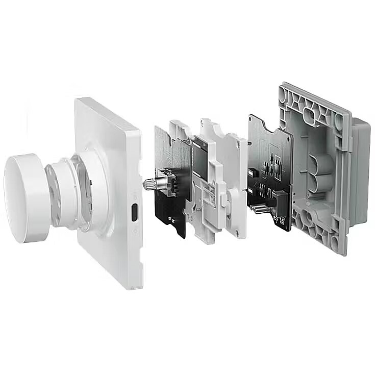 Technical details > Technical features - No Wiring Required; Battery life of up to two years based on a use frequency of 50 times per day (40 presses and 10 rotations); LED indicator (Orange); Rotary button; Wall mounted; Bluetooth 4.2