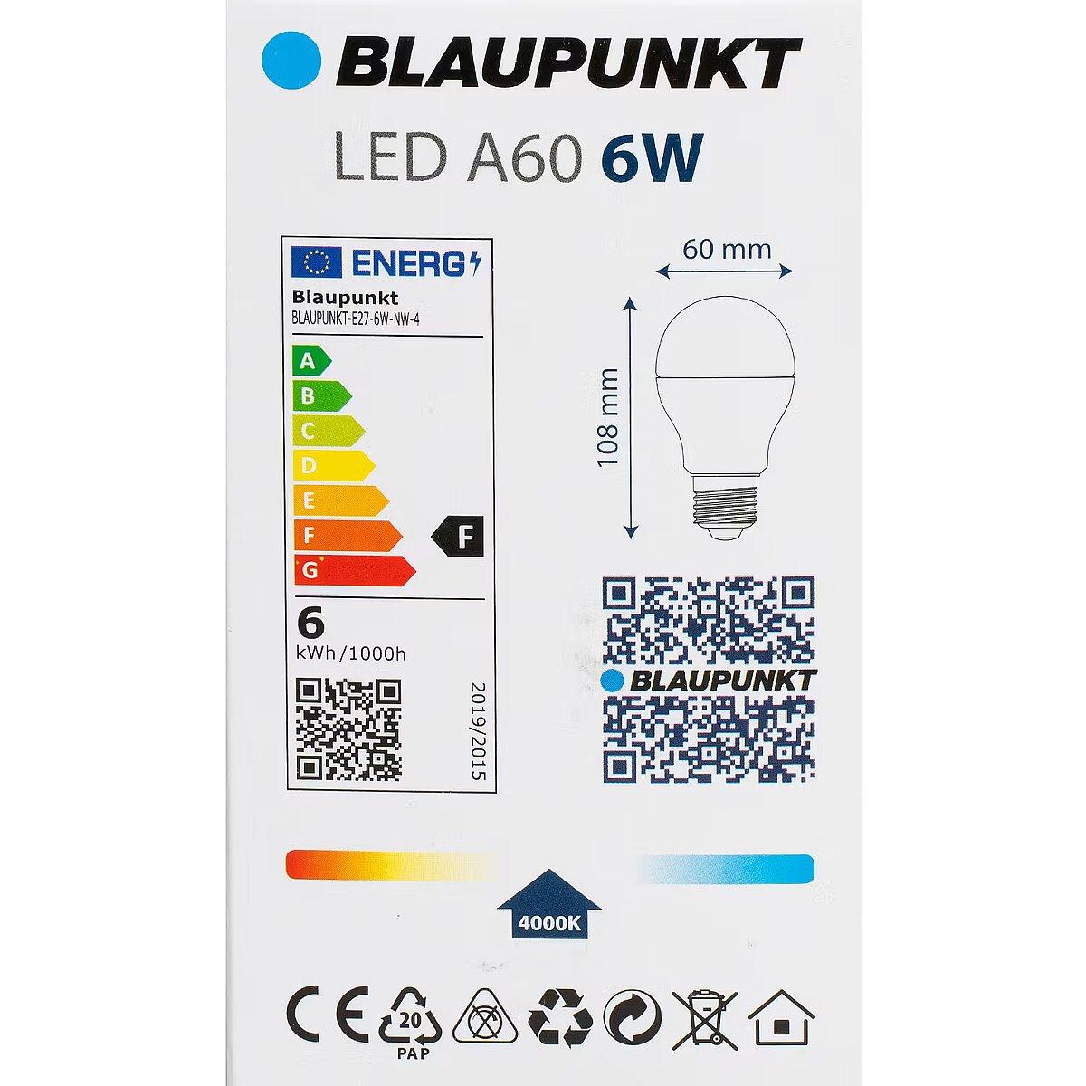 Nimi En - Blaupunkt LED lamp E27 A60 600lm 6W 4000K 4pcs