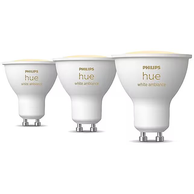 ShortSummaryDescription - Philips Hue White ambience GU10 – smart spotlight – (3-pack), Smart bulb, Bluetooth/Zigbee, White, GU10, GU10, Spot