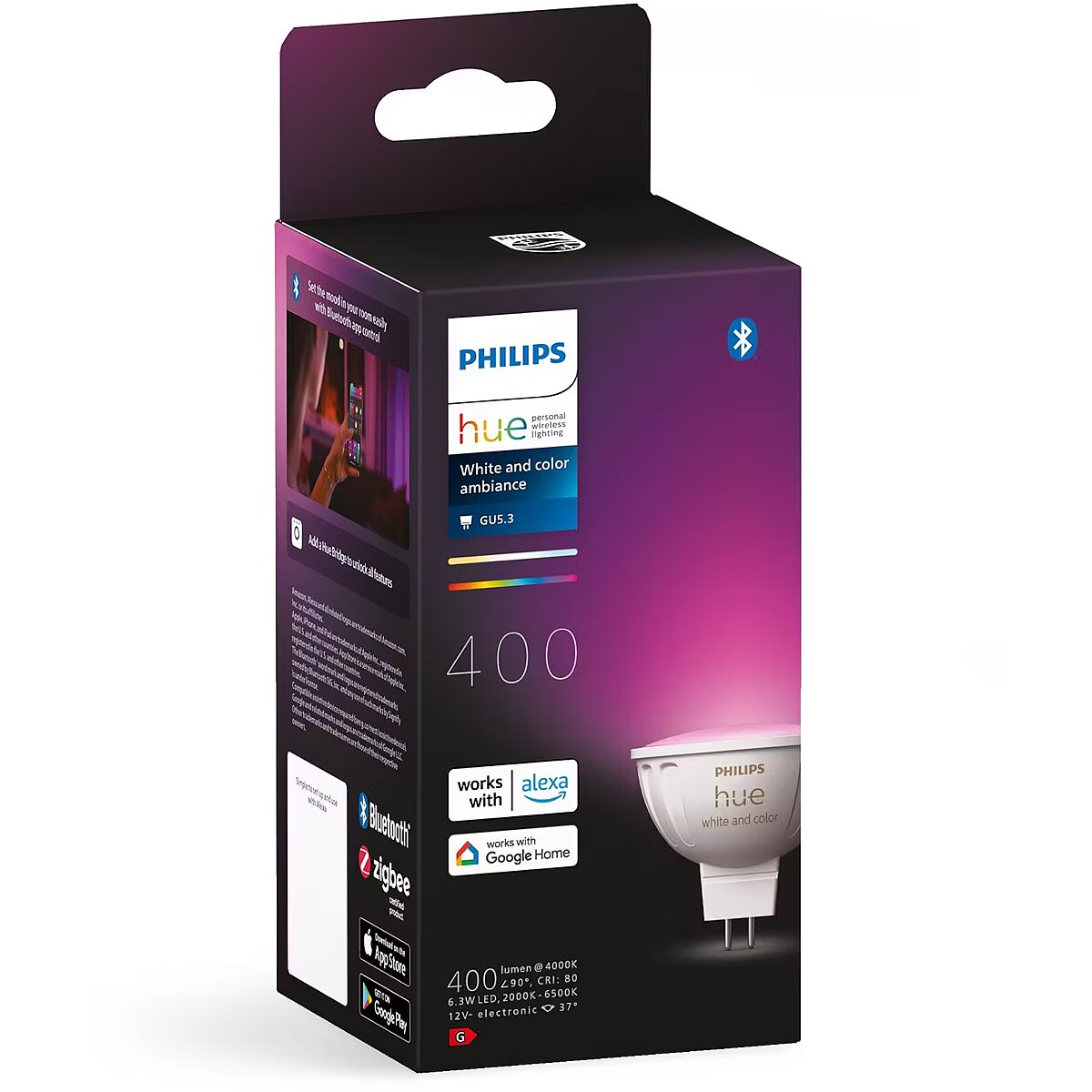 ShortSummaryDescription - Philips Hue White and colour ambience MR16 – smart spotlight, Smart bulb, Bluetooth/Zigbee, White, LED, GU5.3, MR16