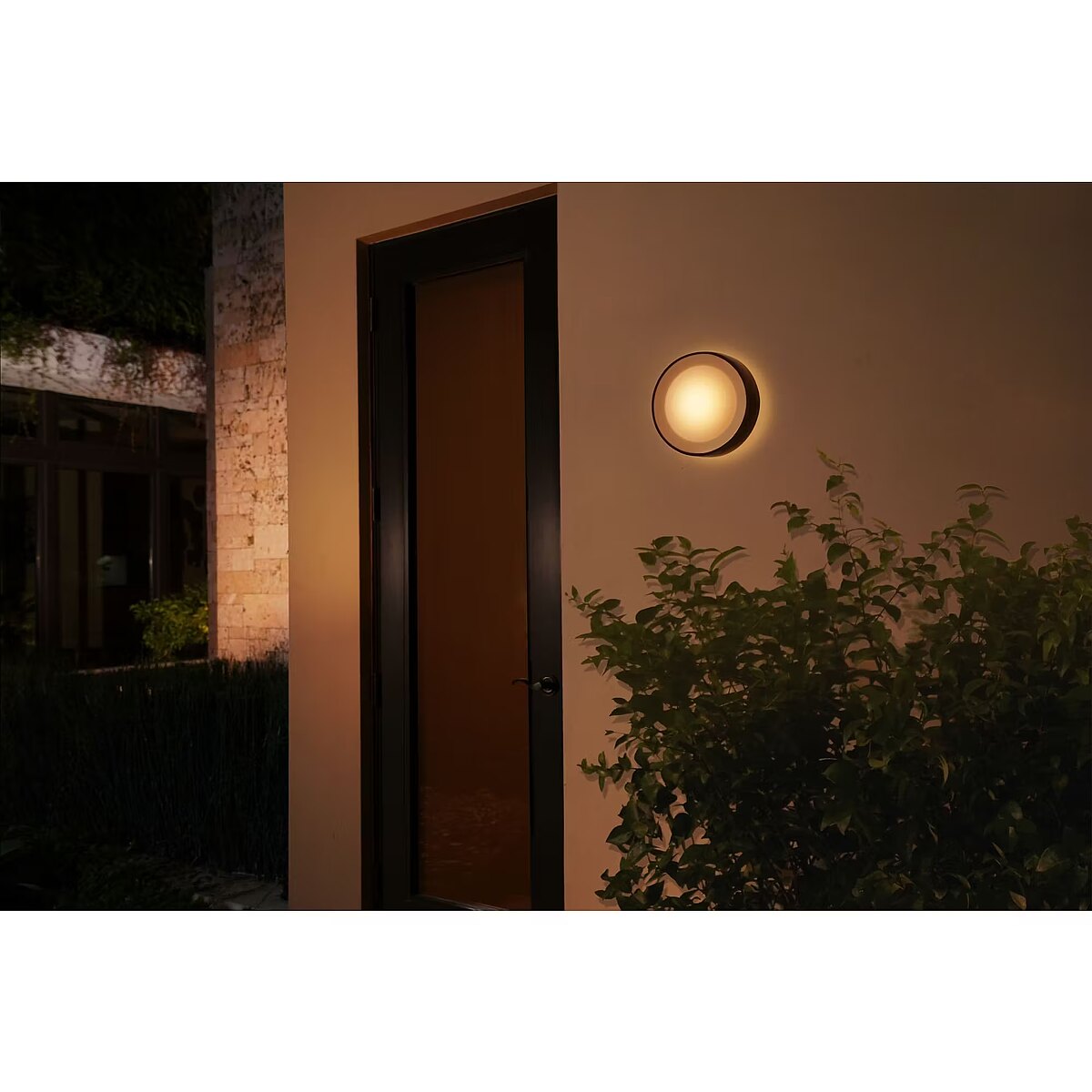 LongDesc - Limitless possibilities for extraordinary experiences Bring a ring of light to your outdoors with the Daylo wall light in black, a round outdoor fixture offering 16 million colours. Get a soft, diffused outward light effect, as well as a subtle backlight behind the fixture.