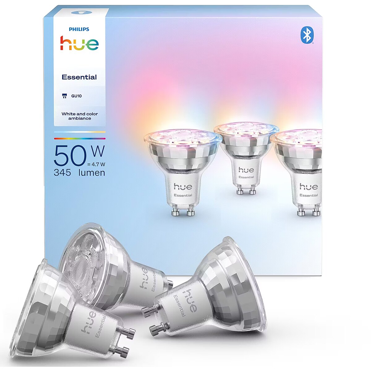 Name EN - Philips Hue Essential GU10 4.7W 345lm, Colored, 3-pack
