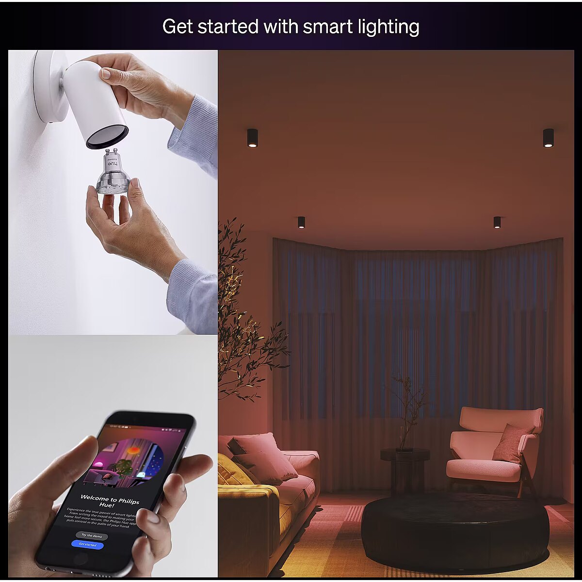 Philips Hue Essential GU10 is the ideal way to enter the world of smart lighting. Control your lights through the app or voice commands and create the right mood for any space.