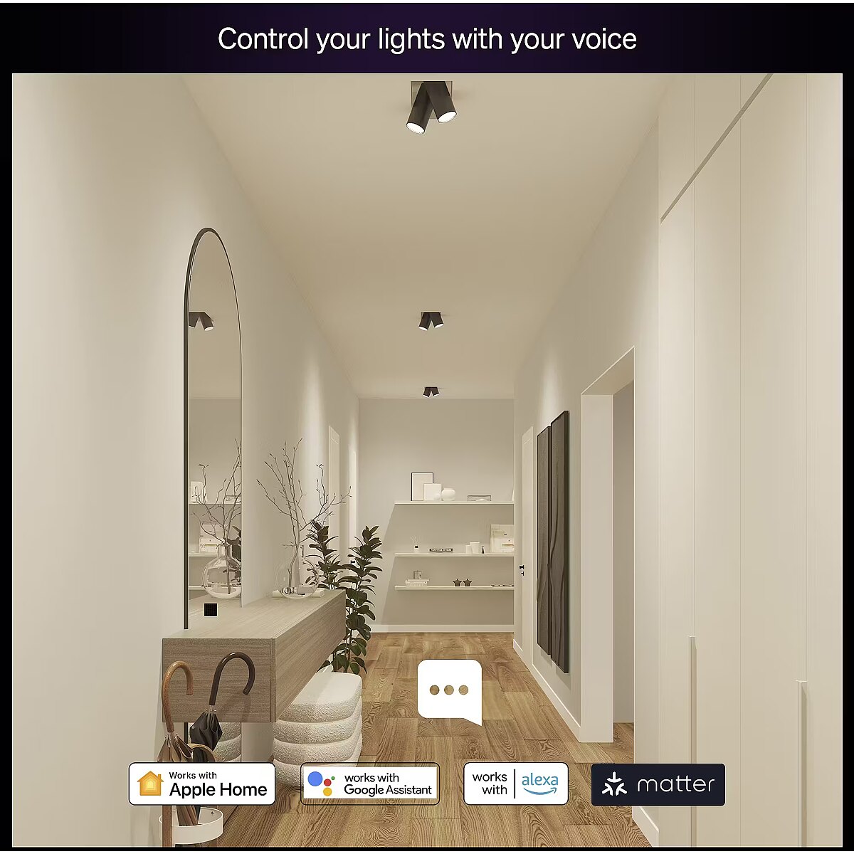 Dimming on täielikult integreeritud – muuda valguse heledust rakenduse, nutilüliti või häälkäskluse abil ilma lisadimmerita.