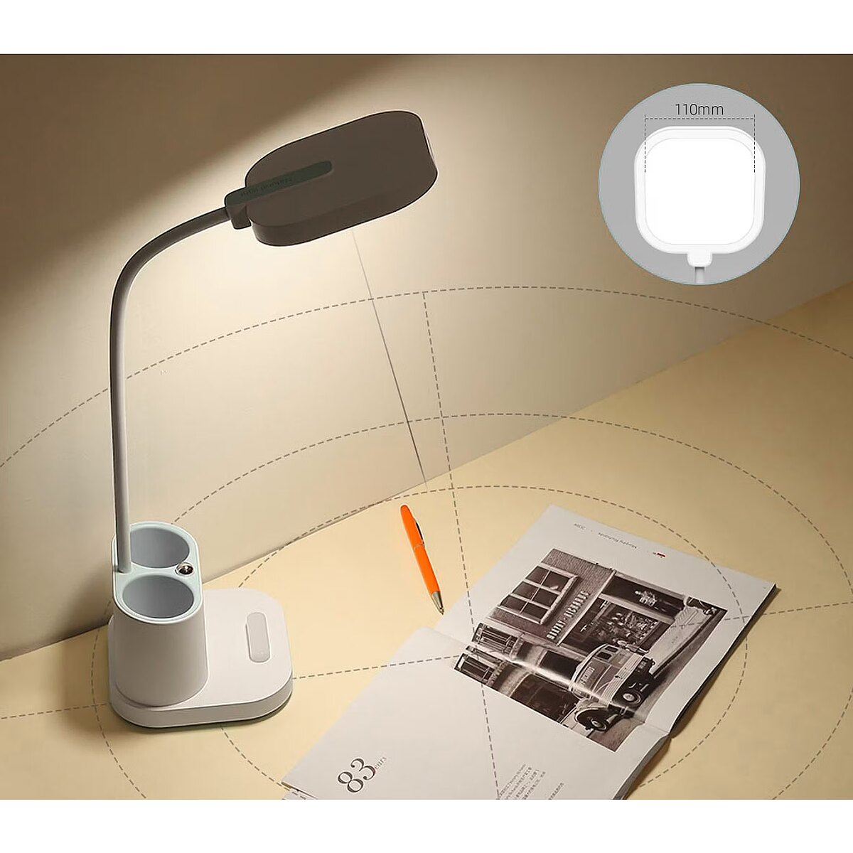 description_short_en - A multifunctional table lamp for the desk or bedside table Energy-saving 5 W LED lamp Can be used as a phone holder and battery bank Pen cup and night light function Modern design