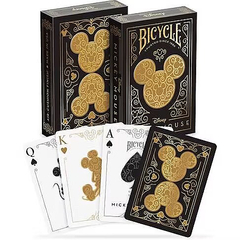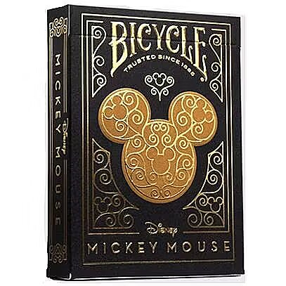 Description - Bicycle Black & Gold Mickey Mickey Mouse is a global pop culture icon and a true friend to all of us. He encourages fans of all ages to explore their originality and creativity while evoking joy around the world. The black and gold Bicycle Micky playing cards exemplify luxury and style with delicate design elements, hidden Mickey Mouse and gold foil heat embossing on the reverse of each card.