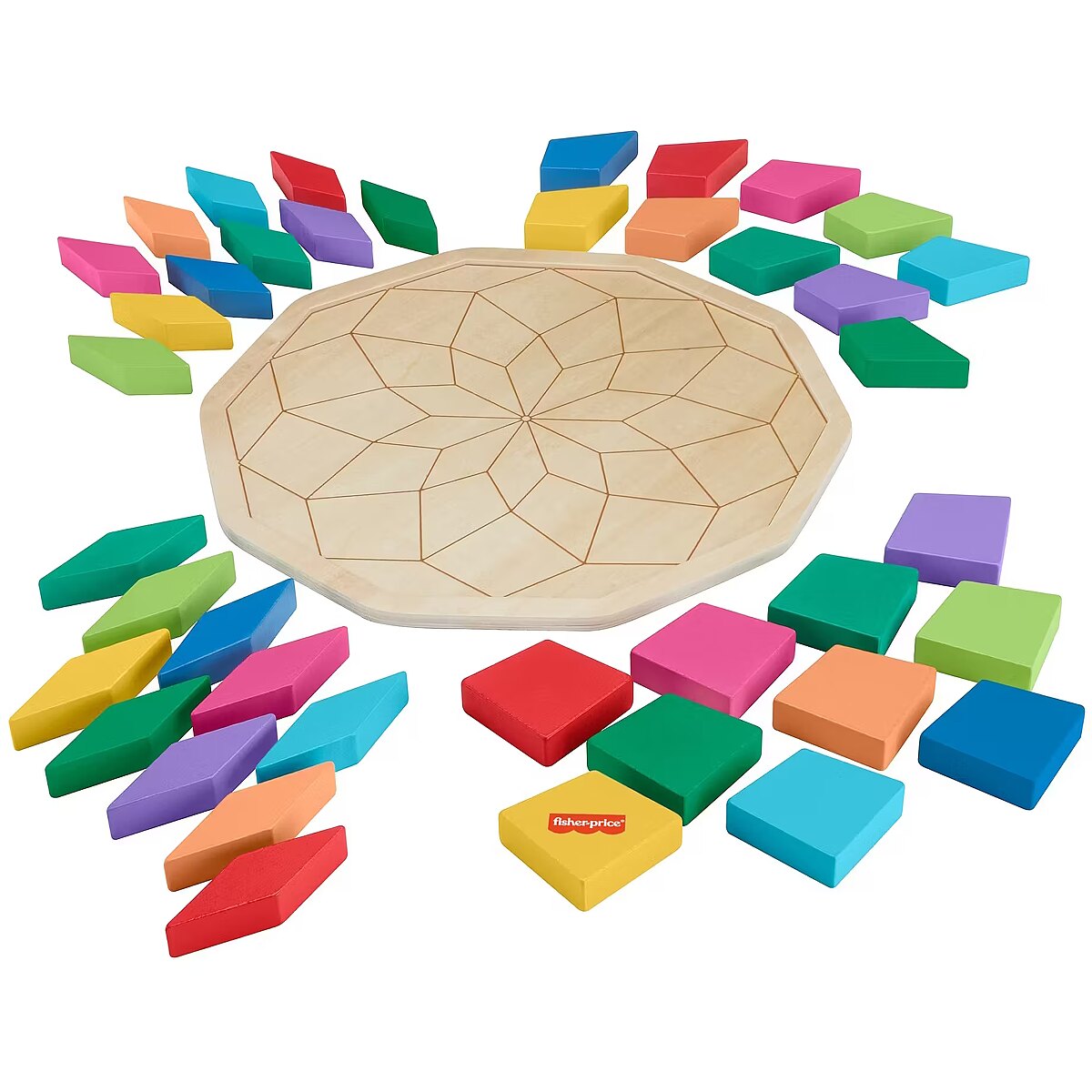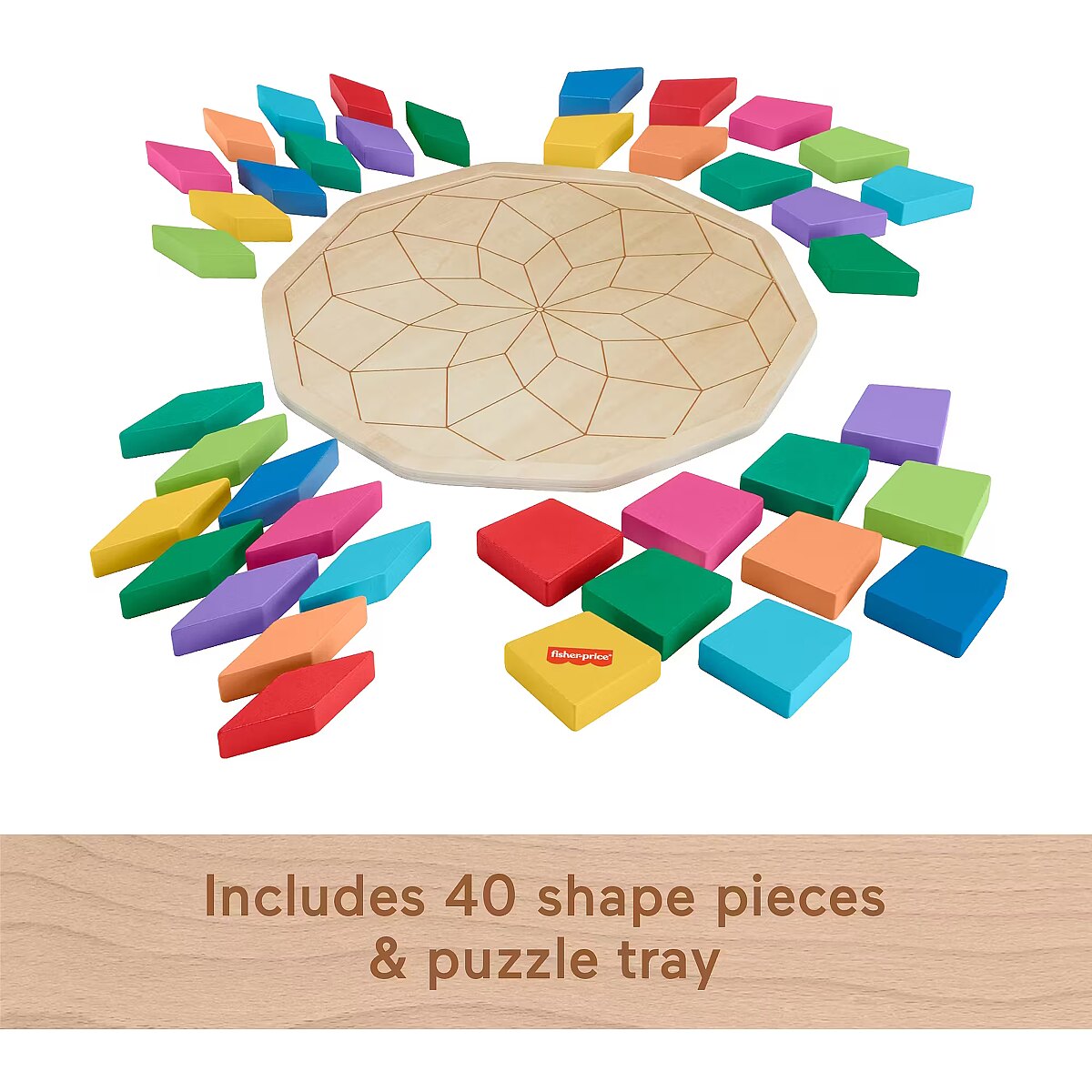 Title - Fisher-Price Wooden Mandala Geometric Puzzle for Toddlers & Kids, 40 Wood Pieces