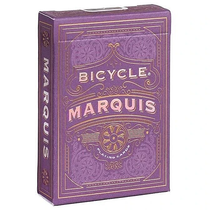 LongSummaryDescription - Bicycle Marquis. Number of cards: 56 pc(s), Product colour: Purple, Number of decks: 1 deck(s). Pallet gross weight: 633 kg, Products per shipping (inner) case: 6 pc(s), Shipping (inner) case length: 28.3 cm. Weight: 100 g, Width: 65 mm, Depth: 92 mm. Manufacturer: U. S. Playing Card Co.