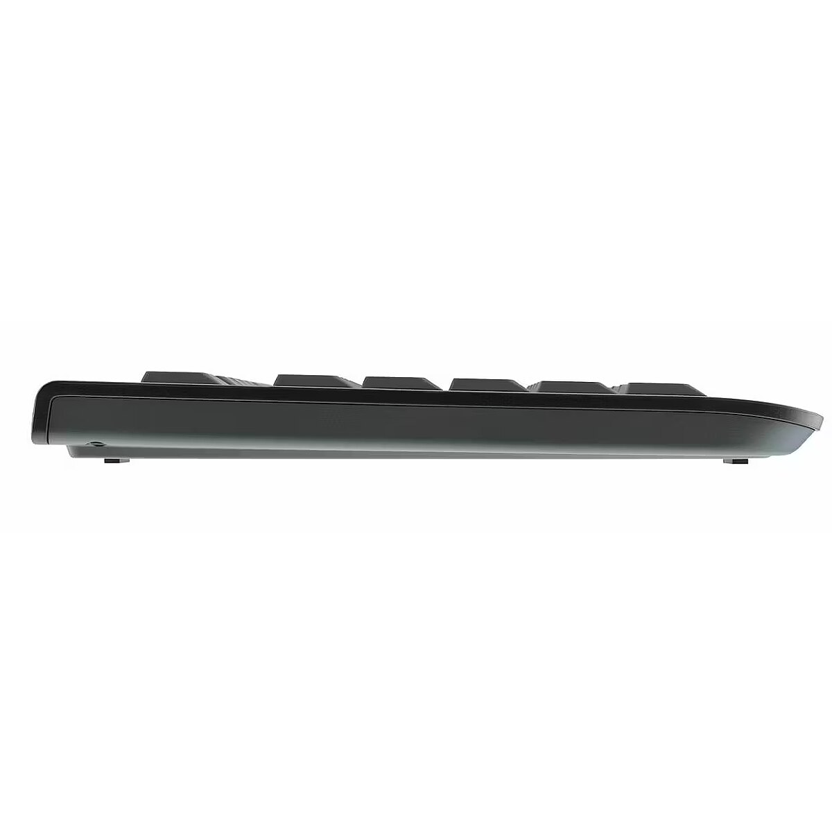 LongDesc - The full-size wireless CHERRY KW 3000 with arrow keys and numeric keypad boasts a flat design, low-noise keys and up to 10 million potential presses per key. This battery-operated CHERRY keyboard is easy to connect wirelessly using the supplied nano USB receiver and works reliably at a range of up to 10 meters.Low-noise, wireless Full-Size keyboardSlim, quiet and reliable: The CHERRY KW 3000 is a full-size wireless keyboard (including arrow keys and numerical keypad) that is easy to connect to devices via Plug & Play using the small nano USB receiver. You'll also love the low-noise buttons with durable labeling, a practical battery status indicator and sturdy fold-out feet for height adjustment — all at a price that's value for money.User-friendly with a clear layout — and no frillsTo connect the flat wireless keyboard, simply place the enclosed nano USB dongle in the USB port of your preferred device — and you're done! The keyboard is easy and quick to install using Plug & Play — so you can benefit from an almost interference-free 2.4-GHz wireless connection. The keyboard has a range of up to 10 meters. With its proven full-size layout, the CHERRY KW 3000 features arrow keys, a numerical keypad, F1 to F12 keys and four additional keys. These additional keys can be used to access the calculator, email, browser or sleep mode in an instant. With our free CHERRY KEYS software, you have the option to individually assign the F and special keys of your wireless PC keyboard. There is a battery status indicator directly above the additional keys that lets you know when it is time to change the battery. The keyboard only requires an AA battery.Solid wireless keyboard — durable and reliableThe CHERRY KW 3000 wireless keyboard provides precise, error-free and low-noise typing, making it suitable for use even in open-plan offices. This wireless keyboard has a service life of up to 10 million presses per key, making it a reliable and durable product. GS ("Tested Safety") approval guarantees compliance with quality and safety standards. The sturdy fold-out feet make it easy to adjust the tilt angle of the KW 3000. Its non-slip underside helps the CHERRY wireless keyboard remain securely in place. The packaging is also completely plastic-free, using tissue paper and other materials instead.