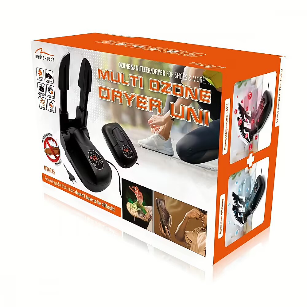 Description - Shoe and other dryer with ozone disinfection Multi Ozone Dryer Uni MT6523 Drying shoes properly is important to ensure their long life, comfort of wearing and maintaining personal hygiene. The Multi Ozone Dryer Uni MT6523 shoe dryer with ozone refreshment function is a revolutionary device that will take care of the hygiene and freshness of your footwear, gloves, socks and sports accessories.