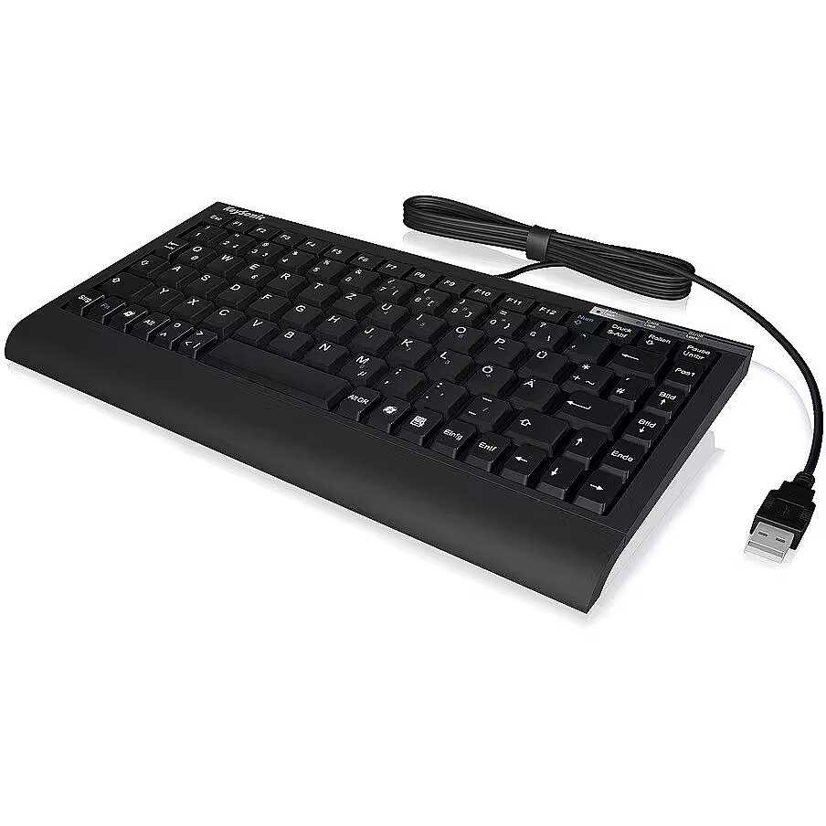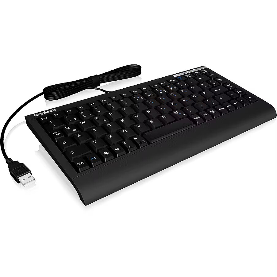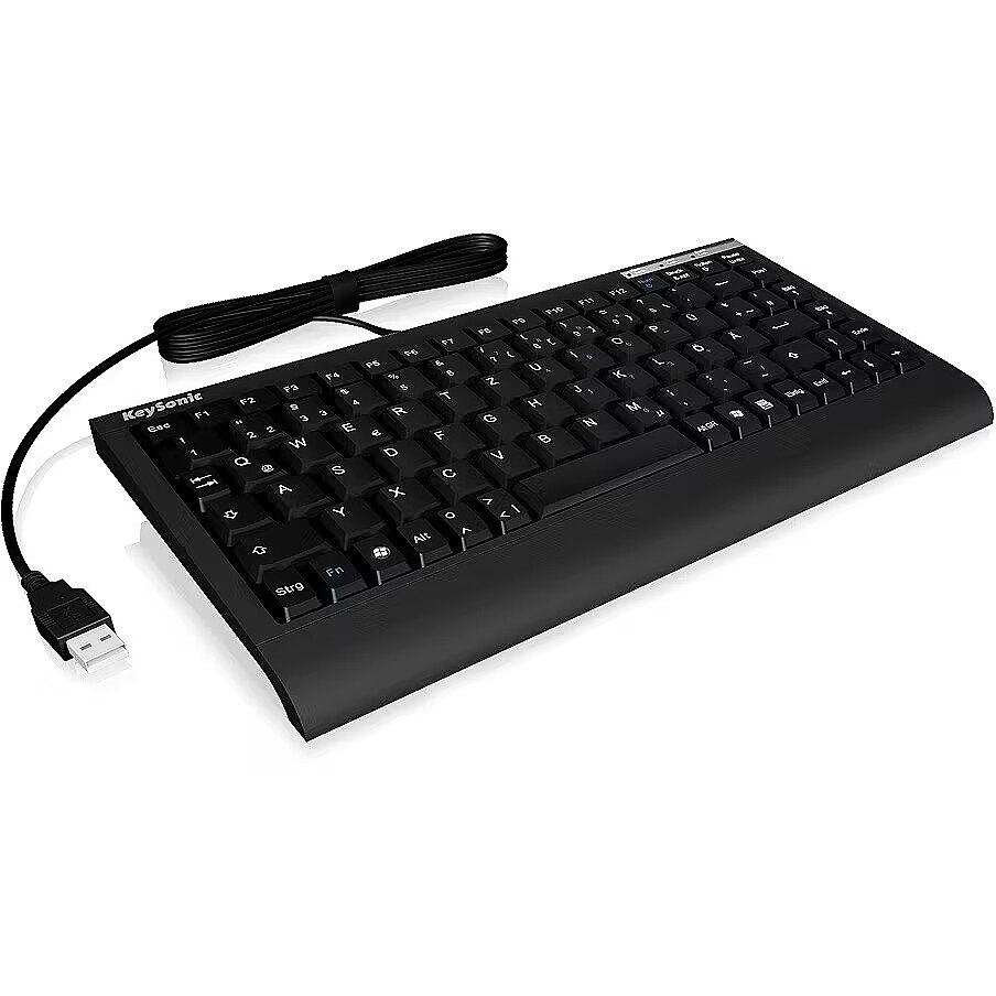 LongSummaryDescription - KeySonic ACK-595C+ (US). Keyboard form factor: Mini. Keyboard style: Straight. Connectivity technology: Wired, Device interface: USB, Keyboard key switch: Membrane, Keyboard layout: QWERTY. Cable length: 1.9 m. Recommended usage: Home. Product colour: Black