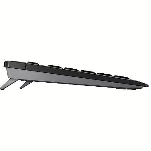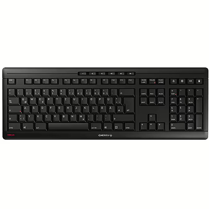 LongDesc - The CHERRY STREAM KEYBOARD WIRELESS is the wireless version of the familiar STREAM KEYBOARD. The 2.4 GHz wireless keyboard has all the features that have made its wired counterpart so popular. The new STREAM KEYBOARD WIRELESS is the perfect choice for all those who have been waiting for the wireless version of the CHERRY classic.The wireless keyboard is plain but elegant, and will appeal to a wide range of tastes. The slim design also reflects current trends. With the feet up or down, it is clear that the wireless keyboard is extremely stable, rigid, and non-slip. This is ensured by the integrated metal plate, the two feet and the eight rubber pads on the underside.At the heart of every keyboard is the key technology. Like all products in the STREAM family, the STREAM KEYBOARD WIRELESS uses CHERRY’s own SX scissor technology. This ensures uniquely comfortable, precise and quiet typing. All these attributes lay the foundation for productive work and make the flat keyboard the ideal companion in the office or at home.The 2.4 GHz wireless connection is also reliable and uncomplicated. The keyboard comes with a plug & play receiver to connected to the PC. Thanks to wireless technology with a range of 10 meters and AES-128 encryption, the desktop is no longer a tangle of cables but tidy space for you to work in comfort.The computer keyboard has a full-size layout and a number pad, which means it immediately feels familiar. There are also useful status LEDs integrated in the CAPS LOCK, NUM and SCROLL LOCK keys. This feature is usually only found in higher price ranges. The red status LED shows you at a glance whether the Caps Lock key is activated, for example. In addition, the LEDs flash when you need to change batteries. However, with a battery life of up to 36 months, this rarely happens.In any work environment, users require certain functions particularly often. The CHERRY STREAM KEYBOARD has handy extra keys for the most important functions. These include six keys for controlling your multimedia player. Three other keys for the browser, e-mail and calculator can be easily accessed. The lock key is especially invaluable in the office environment. The user can simply press it to log out when leaving the workstation.Additional flexibility is offered by the CHERRY KEYS software. It can be downloaded free of charge from www.cherry.de. With just a few clicks, you can configure the office keyboard any way you want.Environmental protection and sustainability are matters that comprise many aspects. With the CHERRY STREAM KEYBOARD, for example, we have managed to make the packaging completely plastic-free. It has also been honored with the oldest of all environmental protection labels, the Blue Angel. In addition, the keyboard bears the GS “safety tested” seal. The only legally regulated test mark in Europe certifies compliance with defined ergonomic and safety standards. All these criteria provide guidance for sustainability when buying products, as well as for the health and safety of your employees.The STREAM KEYBOARD WIRELESS is the perfect wireless standalone keyboard for frequent users with high demands. Based on CHERRY SX scissor technology, the wireless keyboard is quiet, durable and requires no maintenance. It is ideal for anyone who appreciates the advantages of the STREAM KEYBOARD but also wants the benefits of wireless transmission.