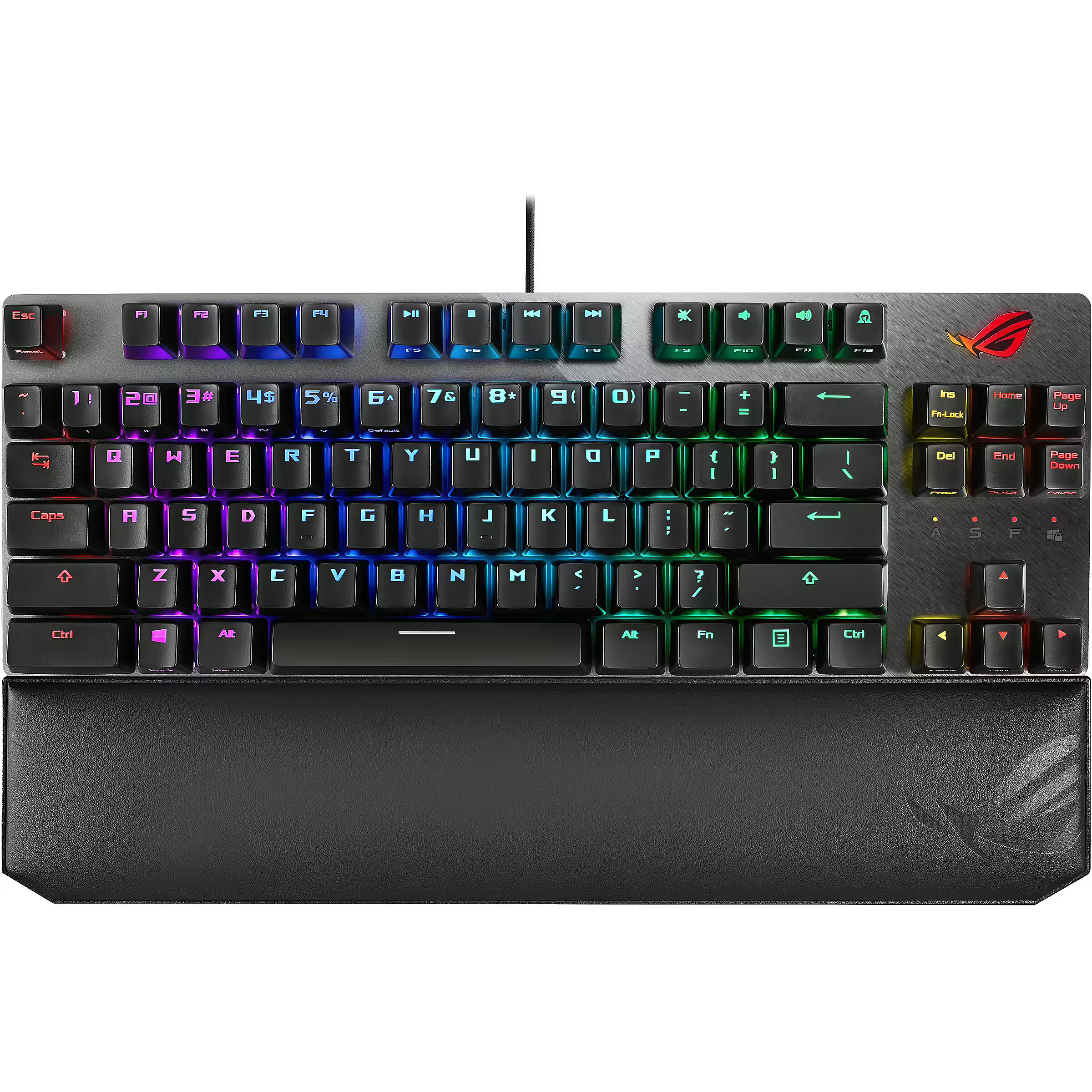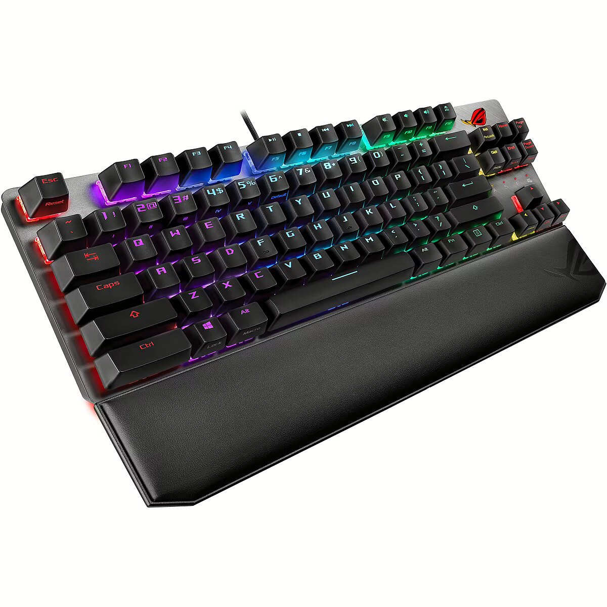 LongDesc - ROG Strix Scope NX TKL Deluxe wired mechanical RGB gaming keyboard for FPS games, with ROG NX switches, aluminum frame, and Aura Sync lightingACTION READY.CRAFTED COMPACT.ROG Strix Scope NX TKL Deluxe is a compact, tenkeyless mechanical keyboard with Xccurate Design – an extra-wide Ctrl key that's easier to feel and find in the FPS frenzy. With ROG-tuned ROG NX mechanical switches, an all-aluminum top plate for strength and style, and more customizable Aura RGB lighting than we've ever engineered into a ROG keyboard, Strix Scope NX TKL Deluxe empowers you to play like a pro and rise above the battlefield crowd.Note: Keyboard layout may differ slightly depending on the region or language.TKL FORM FACTOR FOR FPSROG Strix Scope NX TKL Deluxe is a high-performance mechanical gaming keyboard with a small footprint, freeing up space on your worktop for broader mouse movements – perfect for the lower sensitivity settings that slow the reticle for leveled-up aiming accuracy. The keyboard is topped with an aluminum faceplate for everyday resilience, and finished with a striking slash aesthetic for a little touch of style.MADE FOR PORTABILITYThe compact and frameless design of ROG Strix Scope NX TKL Deluxe is ideal for minimalists, or those who simply need more space. The keyboard comes with a detachable cable, making it easier and safer to stow and carry in a backpack. The Type-C cord also doubles as a charging lead for mobile devices while on the go.ROG NXMECHANICAL SWITCHROG-exclusive gaming switch – ROG NX Mechanical Switch with fast actuation and ROG-tuned force curves for great keystroke feel and feedback.LINEAR & SWIFTROG NX Red Mechanical Switches provide a 1.8mm actuation point for fast input. Initial force of 40gf helps prevent accidental keystrokes, and it extends to 55gf for perfect rebound feedback. As a result, keystrokes are instantaneous and have a smooth and linear feel.ULTRA-TACTILEROG NX Brown Mechanical Switches have a 2mm actuation point, as preferred by traditional brown switch users. The tactile force of 58gf combined with a click ratio of 33% gives every keystroke an obvious, more pronounced tactile response.CLIKCY & TACTILEROG NX Blue Mechanical Switches feature a 2.3mm actuation point, standard 16% click ratio, and an enthusiast-preferred 65gf tactile force — all to provide firm and superb feedback with each keystroke.READY FOR DAY & NIGHT The Quick-Toggle Switch prepares ROG Strix Scope NX TKL Deluxe for gaming or the daily grind, toggling the top row between media or function (Fn) key input – so it's easy to switch modes for work or play. The keyboard is topped with an aluminum faceplate for everyday resilience, and finished with a striking slash aesthetic for a little touch of style.INSTANT PRIVACYA quick tap of ROG Strix Scope NX TKL Deluxe's Stealth key instantly hides all apps and mutes all audio, assuring privacy the moment you need it. Decorated with an iconic cloaked-figure motif, a second push of Stealth puts everything back to just the way it was.AURA SYNCROG Strix Scope NX TKL Deluxe is loaded with vibrant RGB illumination for you to command. There's an individual RGB LED under every key, RGB lock indicators and an RGB ROG logo. It even projects an arresting RGB underglow from below, extending the lighting beyond the keyboard. Powered by Aura Sync, the entire color spectrum and a range of dynamic lighting effects are at your command to create a complete system that's uniquely yours. Strix Scope NX TKL Deluxe's lighting is also easily synced with the extensive Aura ecosystem, so it's easy to build a gaming environment that really shines.Note: Lighting synchronization between ROG mice and keyboards is controlled via Armoury Crate, while synchronization with other components is enabled via ASUS Aura software.ARMOURY CRATEArmoury Crate is a software utility designed to give you centralized control of supported gaming products, making it easy to tune the look and feel of your system. From a single intuitive interface, Armoury Crate lets you easily customize RGB lighting and effects for compatible devices and synchronize them with Aura Sync to create a unified lighting scheme across your system. Armoury Crate also allows you to customize user profiles, map keys, record macros, and even track hardware stats during gameplay.MAGNETIC & ERGONOMICWRIST RESTROG Strix Scope NX TKL Deluxe comes with an ergonomic wrist rest that's filled with soft padding and finished with leatherette, for cool comfort that molds naturally to your posture. Strong magnets keep this cushioned pad in place during play, and also enable it to be rapidly detached when you need to change your angle of attack or stow your keyboard in a bag.
