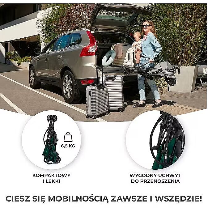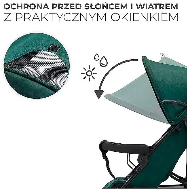Description - TIK GREEN FOREST stroller Main advantages Perfect for travel Folding in seconds Light only 6.5 kg Lying position Cushioned, puncture-proof wheels For holidays and every day