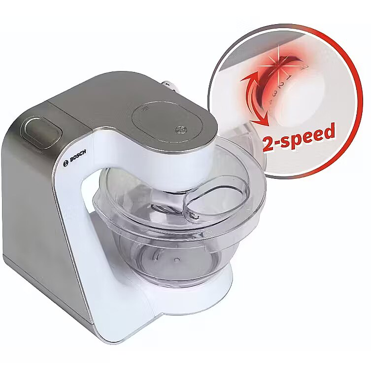 Description - KL 9234 Robot kuchenny Bosch Srebrny Robot kuchenny Klein powstał na licencji Bosch, dlatego też są wierną kopią prawdziwego urządzenia produkowanego przez tę firmę. Firma Klein od lat produkuje odpowiedniki prawdziwych narzędzi i akcesoriów AGD, przeznaczone do zabawy dla najmłodszych. Robot kuchenny jest srebrny i idealnie nada się do każdej dziecięcej kuchni, a także zapewni ciekawe urozmaicanie każdej zabawy. Zabawka została wyposażony w zdejmowaną przezroczystą miskę, składane ramię, dwie regulowane prędkości obrotów, funkcję światła i dźwięku. Dla właściwego użytkowania zabawki wymagane są baterie, które nie są częścią zestawu. Ten zabawkowy robot kuchenny może naprawdę służyć do przygotowania prostego deseru, czy koktajlu. Misa na produkty jak i mieszadło są wyjmowane dzięki czemu z łatwością można je umyć. Panel, w którym mocuje się mieszadło, podnosi się do góry, aby bez usuwania mieszadła można było wyjąć misę, aby np. dodać do niej produkty. Podczas pracy urządzenia na panelu ustawień zapalają się lampki kontrolne, co jeszcze bardziej zbliża tą zabawkę wyglądem do prawdziwego robota kuchennego. Jest to jedna z najbardziej realistycznych, zabawkowych imitacji sprzętów AGD firmy Klein. Zabawka zachwyci każdą dziewczynkę, która uwielbia obserwować i pomagać swoim opiekunom w kuchni. Wygląd i funkcje robota kuchennego są bardzo podobne do oryginalnego produktu marki Bosch, ale dzięki jego plastikowym elementom jest zupełnie bezpieczny w użytkowaniu. Wielkość robota jest dopasowana do potrzeb i rączek dziecka. Zabawka z pewnością będzie również świetnym uzupełnieniem pozostałych zestawów kuchennych firmy Klein. Specyfikacja: Produkt jest zabawką Zabawka przeznaczona dla dzieci powyżej 3 roku życia Waga : 0,64 kg Wymiary opakowania : 20x22x20 cm Wymagane baterie: 3 x AA Ilość w opakowaniu zbiorczym : 4 Kraj pochodzenia : Chiny Seria zabawek AGD firmy KLEIN realistycznie odzwierciedla prawdziwe urządzenia wprowadzone na rynek przez najbardziej znane i jakościowo najlepsze marki produktów. Dla małych gospodyń domowych to niesamowita atrakcja! Dzieci z chęcią uczą się pomagać w wykonywaniu domowych czynności jednocześnie świetnie się przy tym bawiąc. Każdy ze sprzętów kuchennych pomoże w przygotowaniu zarówno małej przekąski jak i wykwintnego przyjęcia dla lalek lub koleżanek. Dodatkową zaletą tych zabawek jest to, że ich kolorystyka jest odpowiednia dla dziewczynek oraz dla chłopców.