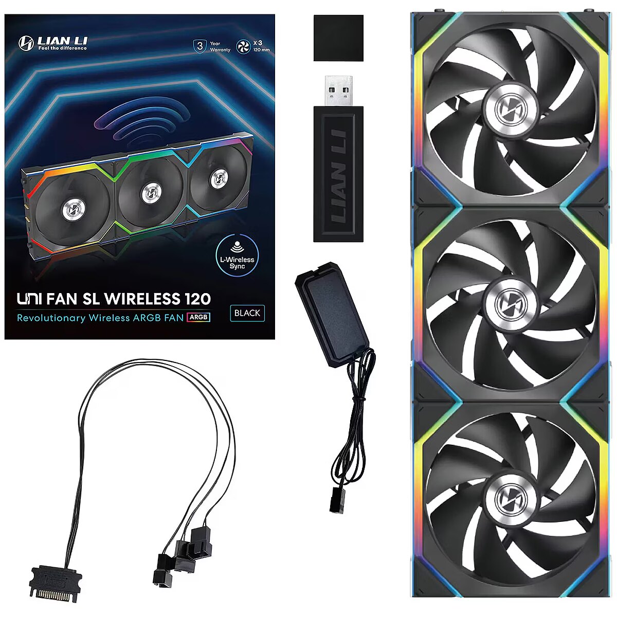 name - Lian Li UNI FAN SL Wireless ARGB PWM Lüfter, 3er-Pack inkl. Controller - 120 mm, schwarz