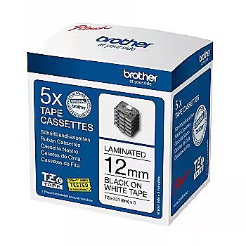 Description - BROTHER TZE-231 BLACK ON WHITE 12 MM MULTIPACK OF TAPES (5 PACK)