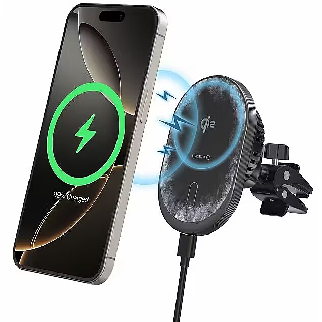 title_lv - Swissten Magnetic Auto Turētājs MagRide ar Bezvadu Uzlādi Qi2 15W (MagSafe compatible)