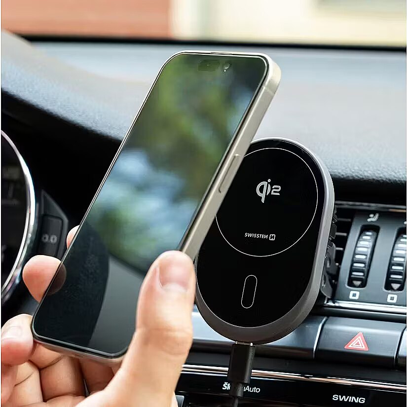 title_en - Swissten Magnetic Car Holder MagRide with Wireless Charger Qi2 15W (MagSafe compatible)