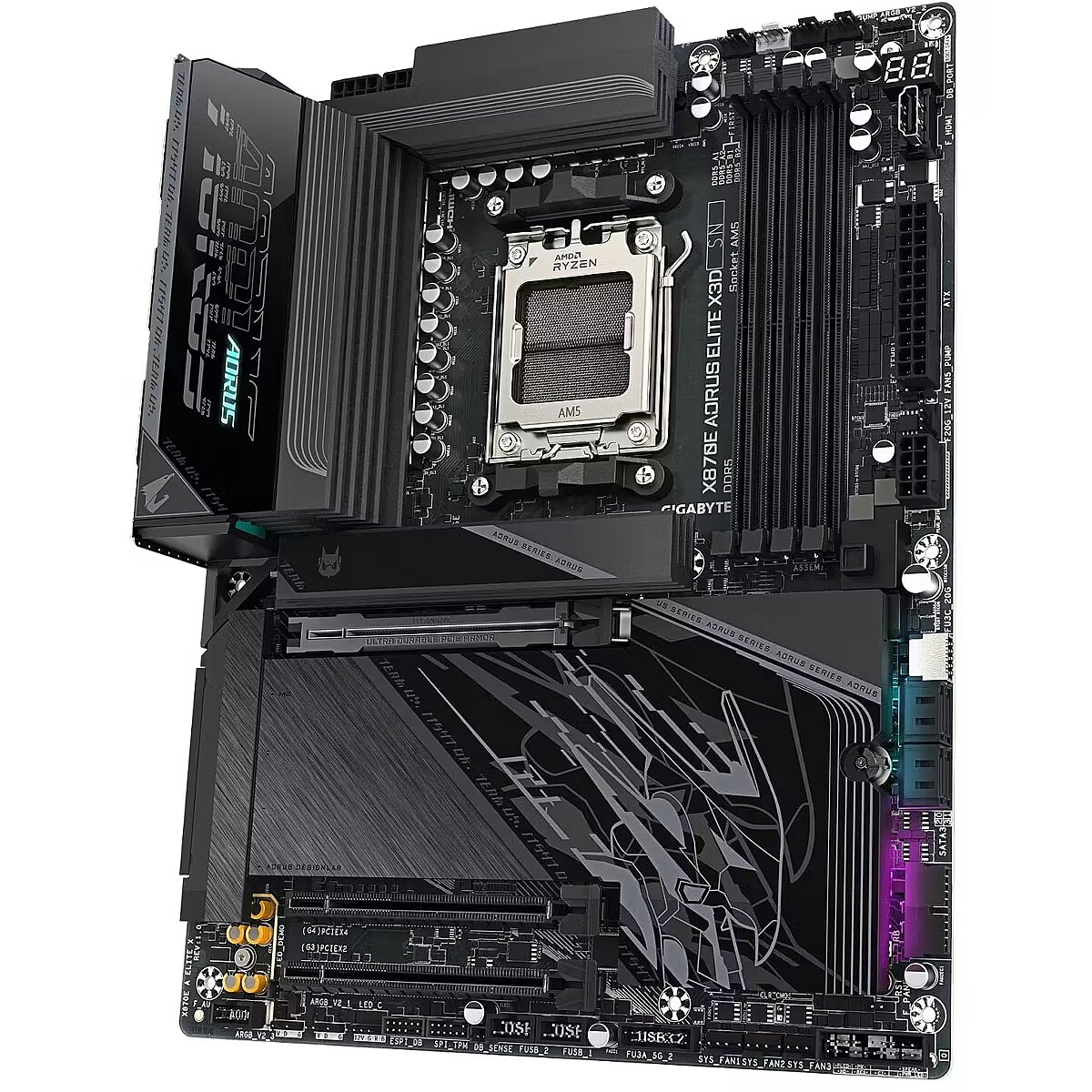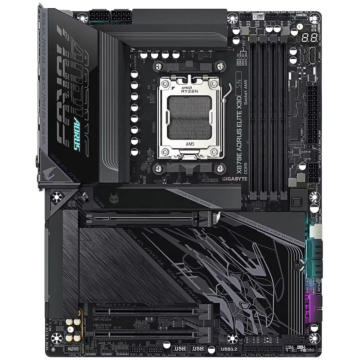 ShortSummaryDescription - GIGABYTE X870E AORUS ELITE X3D Motherboard - Supports AMD Ryzen 9000 CPUs, 16+2+2 Phases Digital VRM, up to 9000Hz DDR5 (OC), 2xPCIe 5.0 + 2xPCIe 4.0, Wi-Fi 7, 5GbE LAN, USB 4, AMD, Socket AM5, AMD Ryzen 7000 Series, AMD Ryzen 8000 Series, AMD Ryzen 9000 Series, Socket AM5, DDR5-SDRAM, 256 GB