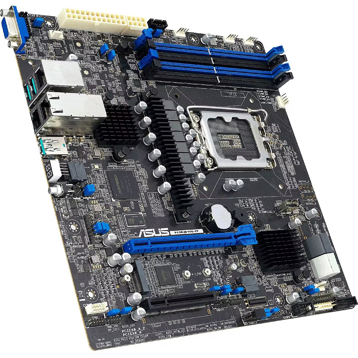 LongSummaryDescription - ASUS P13R-M/10G-2T. Processor manufacturer: Intel, Processor socket: LGA 1700, Compatible processor series: Intel® Pentium®, Intel Xeon E. Supported memory types: DDR5-SDRAM, Maximum internal memory: 128 GB, Memory slots type: DIMM. Supported storage drive interfaces: M.2, SATA III, Supported storage drive types: HDD & SSD. Graphics card family: ASPEED, Graphics card: AST2600, On-board graphics card model: Aspeed AST2600. Ethernet interface type: 10 Gigabit Ethernet, LAN controller: Intel X710-AT2