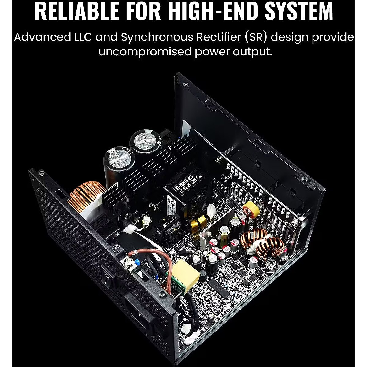 80 PLUS Gold energiatõhususe sertifikaat, mille see toiteplokk on saanud, tagab vähemalt 90% tõhususe 50% koormusel. Teisisõnu, iga 100 W energia kohta, mida toiteplokk saab elektrivõrgust, läheb vähemalt 90 W teie arvutikomponentidele ja ülejäänud 10 W kaob soojusena.