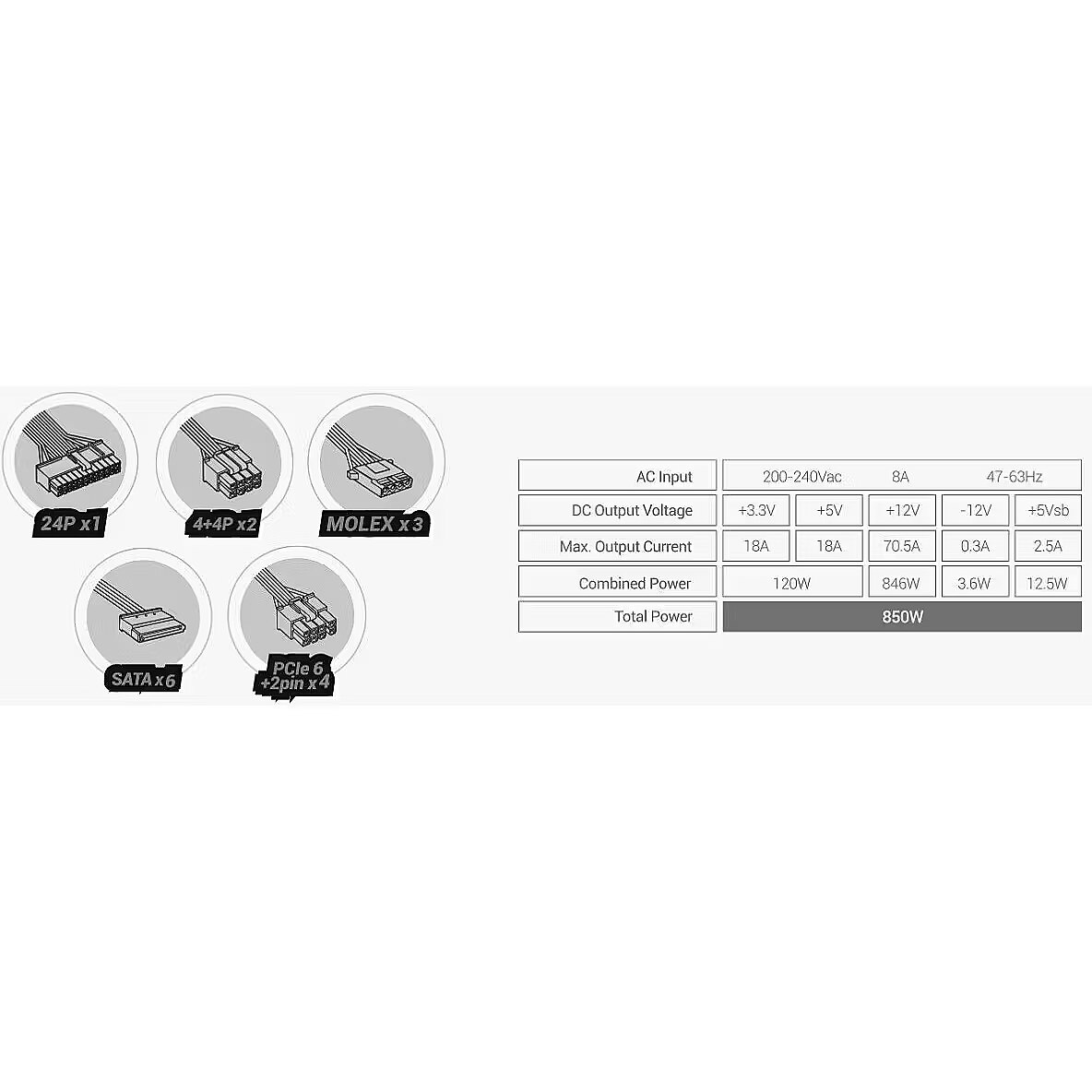ShortSummaryDescription - Mars Gaming MPB850SI, 850 W, 200 - 240 V, 47 - 63 Hz, 8 A, Active, 120 W