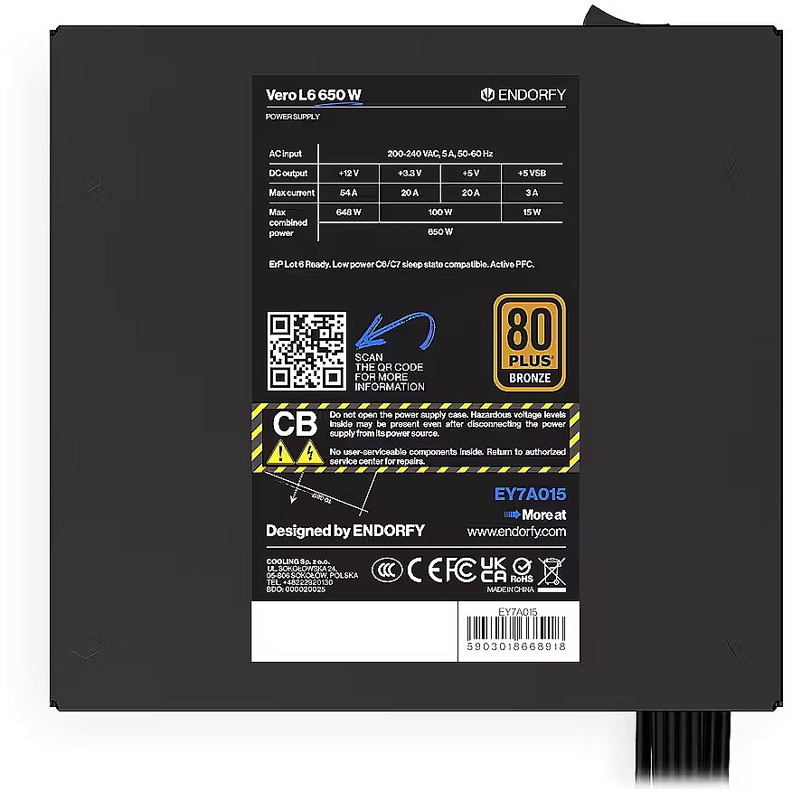 Endorfy Vero L6, 650W, 80PLUS Bronze, ATX 3.1, PCIe 5.1