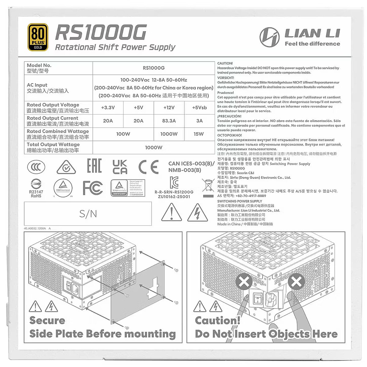 name - Lian Li RS Series 80 PLUS Gold Netzteil, ATX 3.1, modular - 1.000 Watt, mit RS Hub, weiß