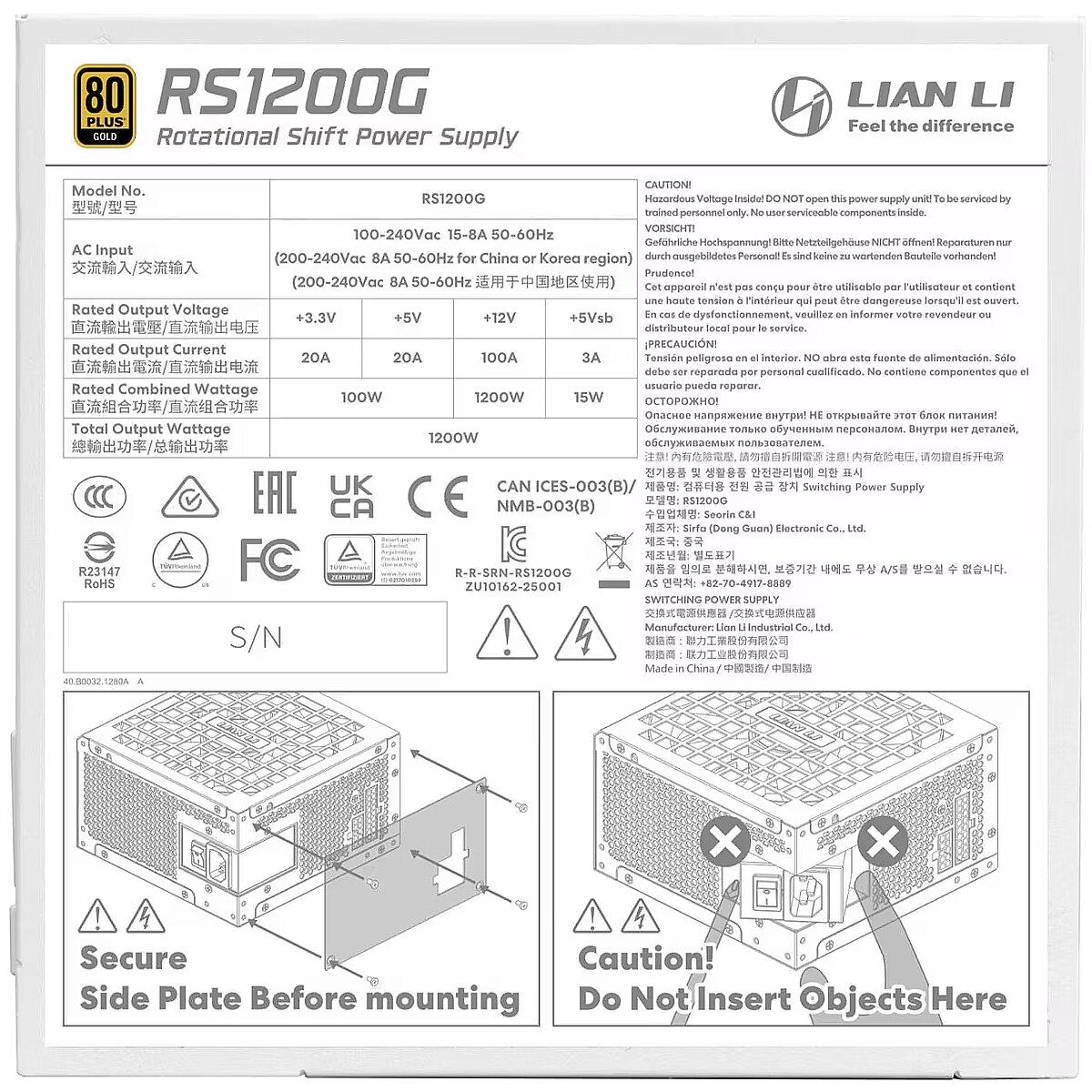 Lian Li RS1200G White, 1200W, 80PLUS Gold, ATX 3.1, PCIe 5.1 (With USB Hub)