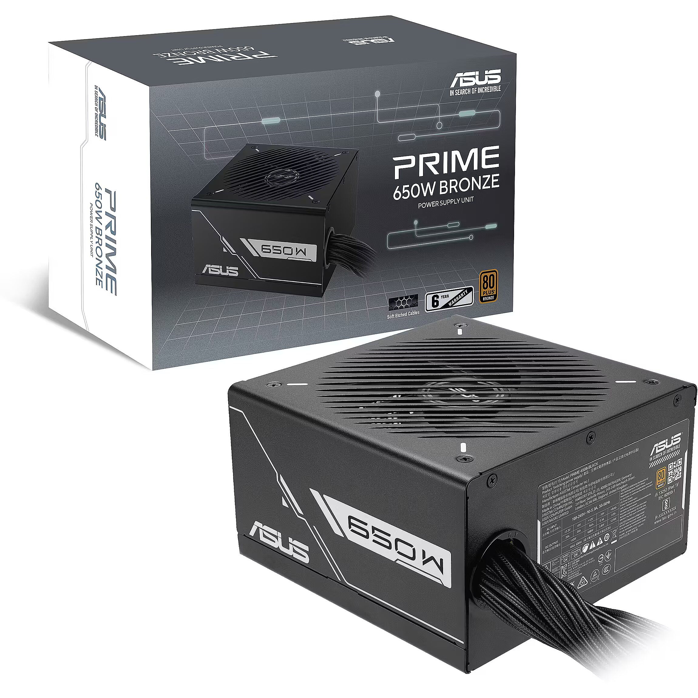 LongDesc - Prime PerformanceWith 80+ Bronze certification, dual ball fan bearings, etched cables and an 6-year warranty, the ASUS Prime series PSU brings efficient and durable power delivery to reliable performance for the system build.